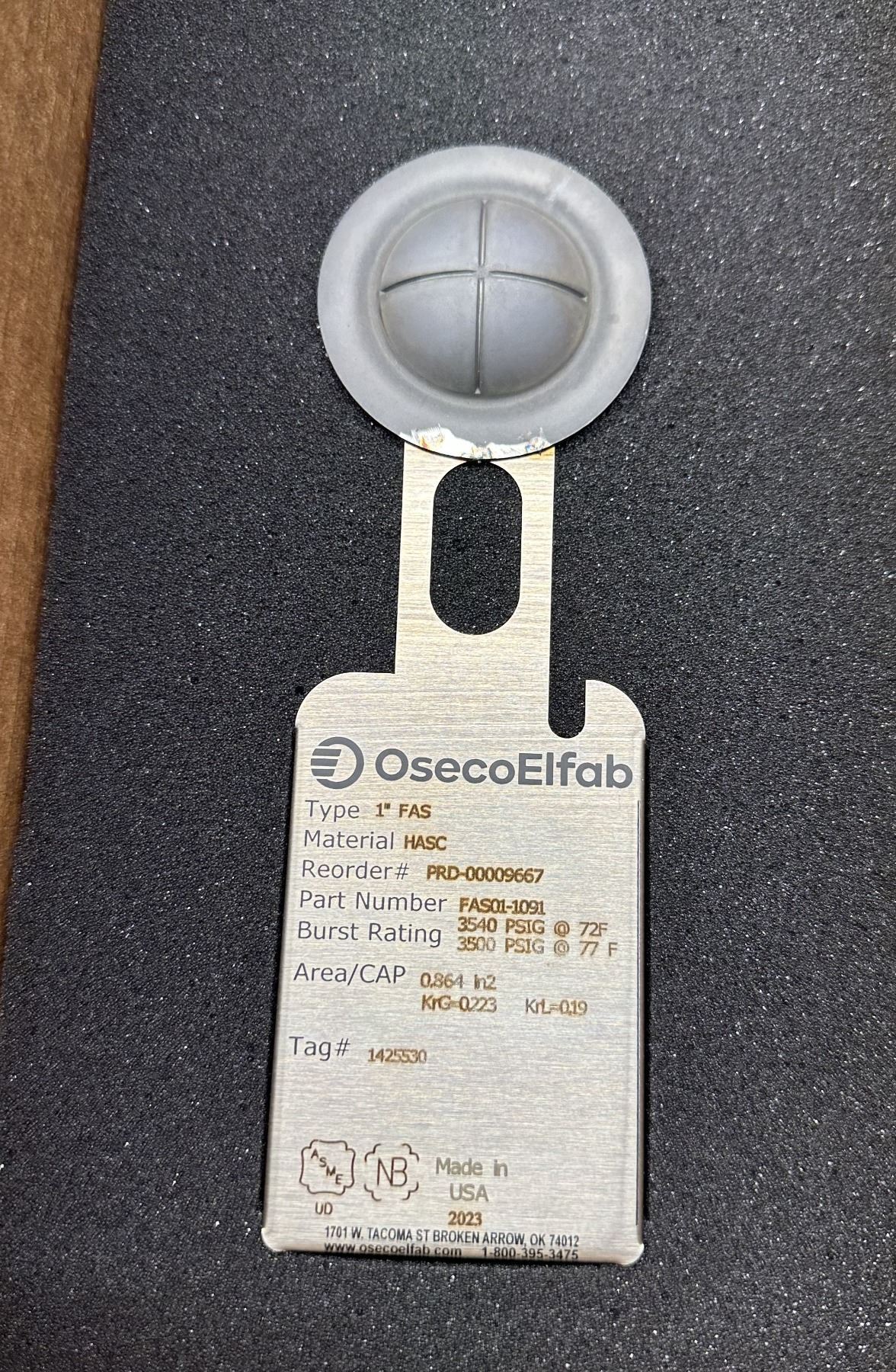 Lot of (4) Oseco Elfab #D43-01-B8016183CAAF4 1" FAS Buckling Rupture Disc