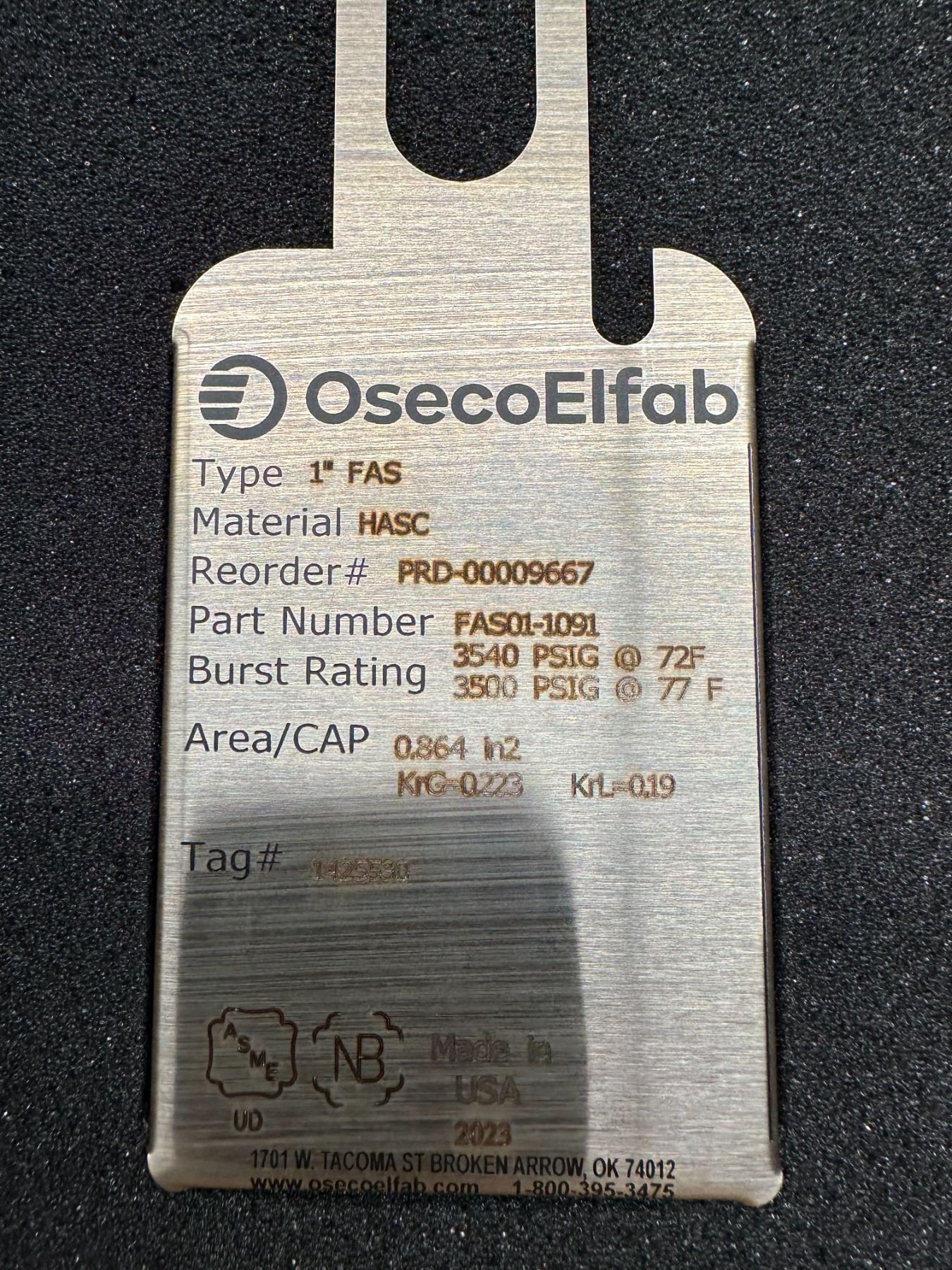Lot 764 Lot of (4) Oseco Elfab #D43-01-B8016183CAAF4 1" FAS Buckling Rupture Disc