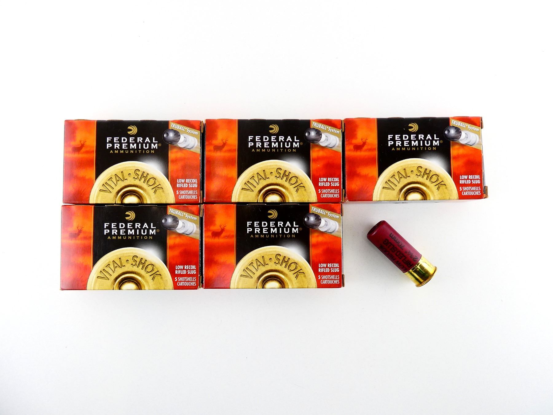 LOT INCLUDES; APPROX. (25) RNDS, SHOT SIZE #RIFLED SLUG HP, TRUBALL LOW RECOIL.