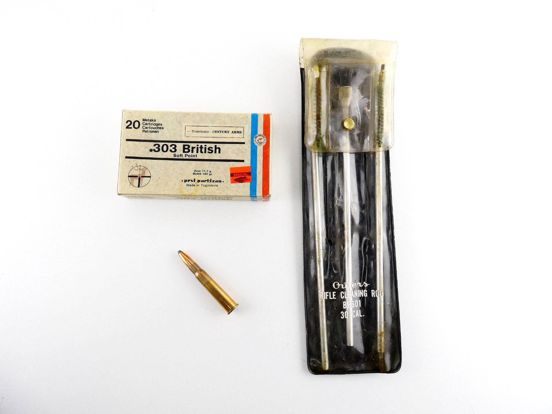 LOT INCLUDES; APPROX. (20) RNDS, 180 GRNS (STATED ON BOX NOT CONFIRMED), SP., (1) .30 CALIBER (3) PIECE CLEANING ROD SET.
