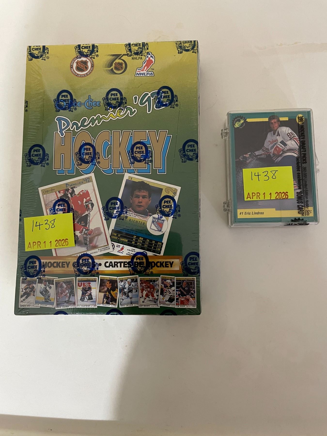 Lot 1438 Sealed box of O-PEE-CHEE premier 1992 hockey cards and sealed case of hockey draft picks 1991