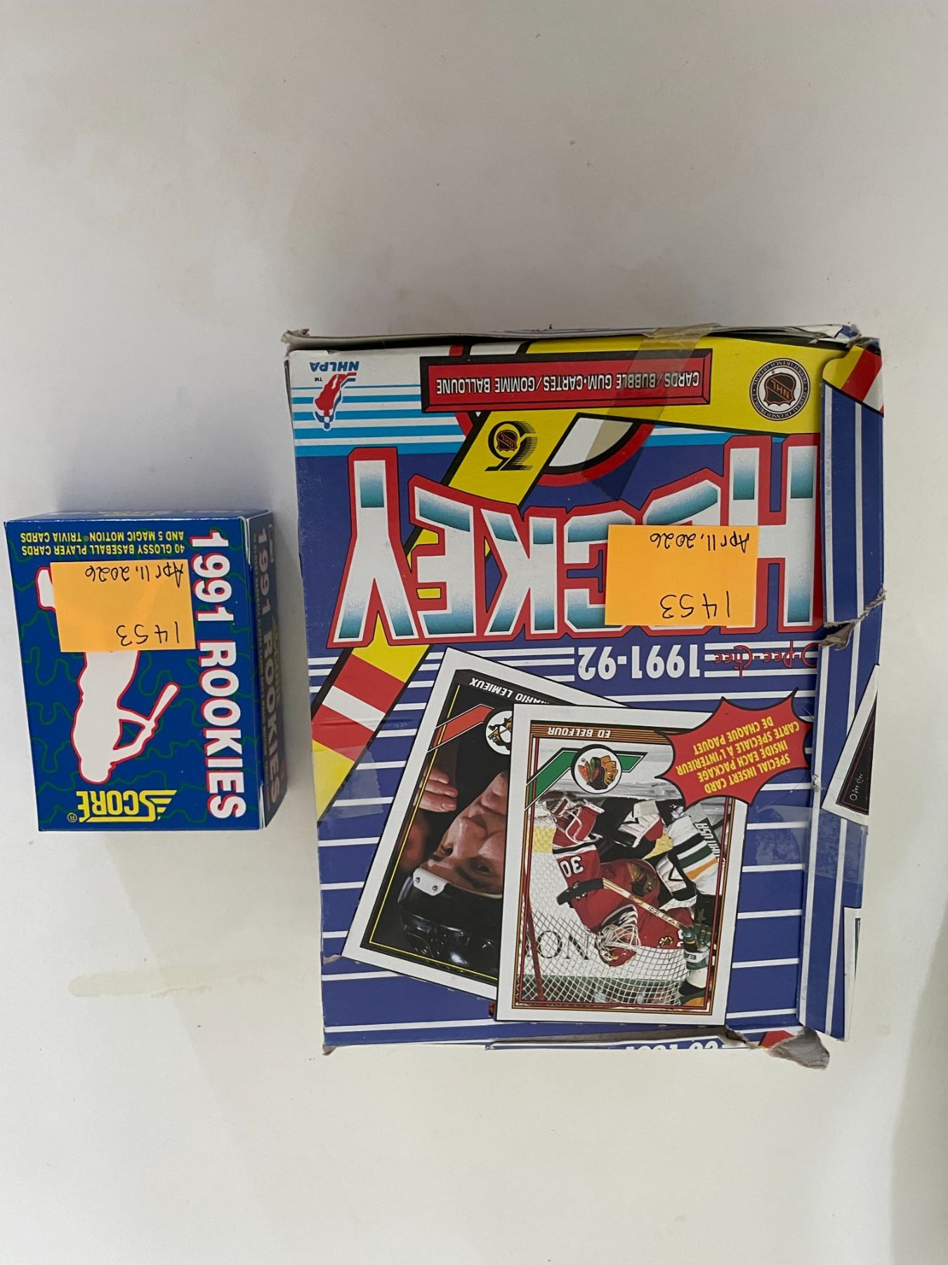 Lot 1453 Unopened 1991 O-PEE-CHEE hockey cards with gum and 1991 box of score rookies baseball cards sealed