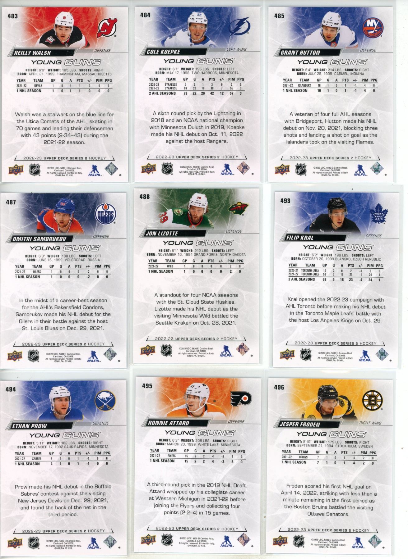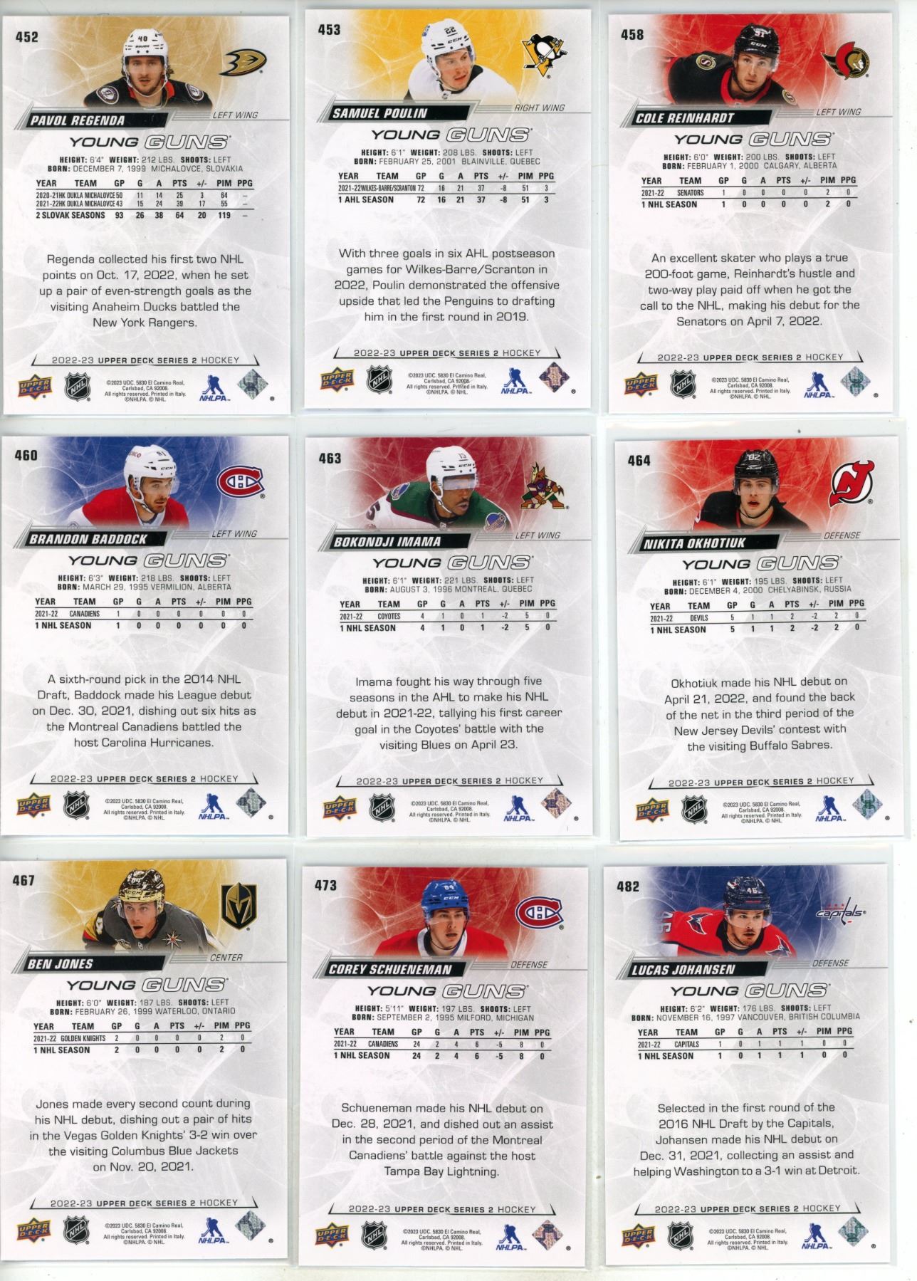 Lot 1469 (20) 2022-23 Upper Deck Series 2 Hockey Different Young Guns Hockey Cards.