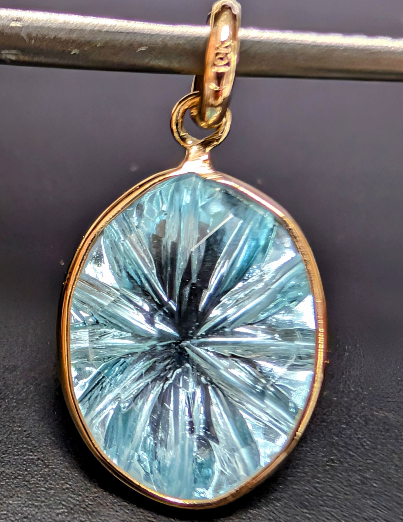 Lot 25 10K(1.2G), CARVED BLUE TOPAZ (APP 5CT) PENDANT, SUGGESTED RETAIL VALUE $600