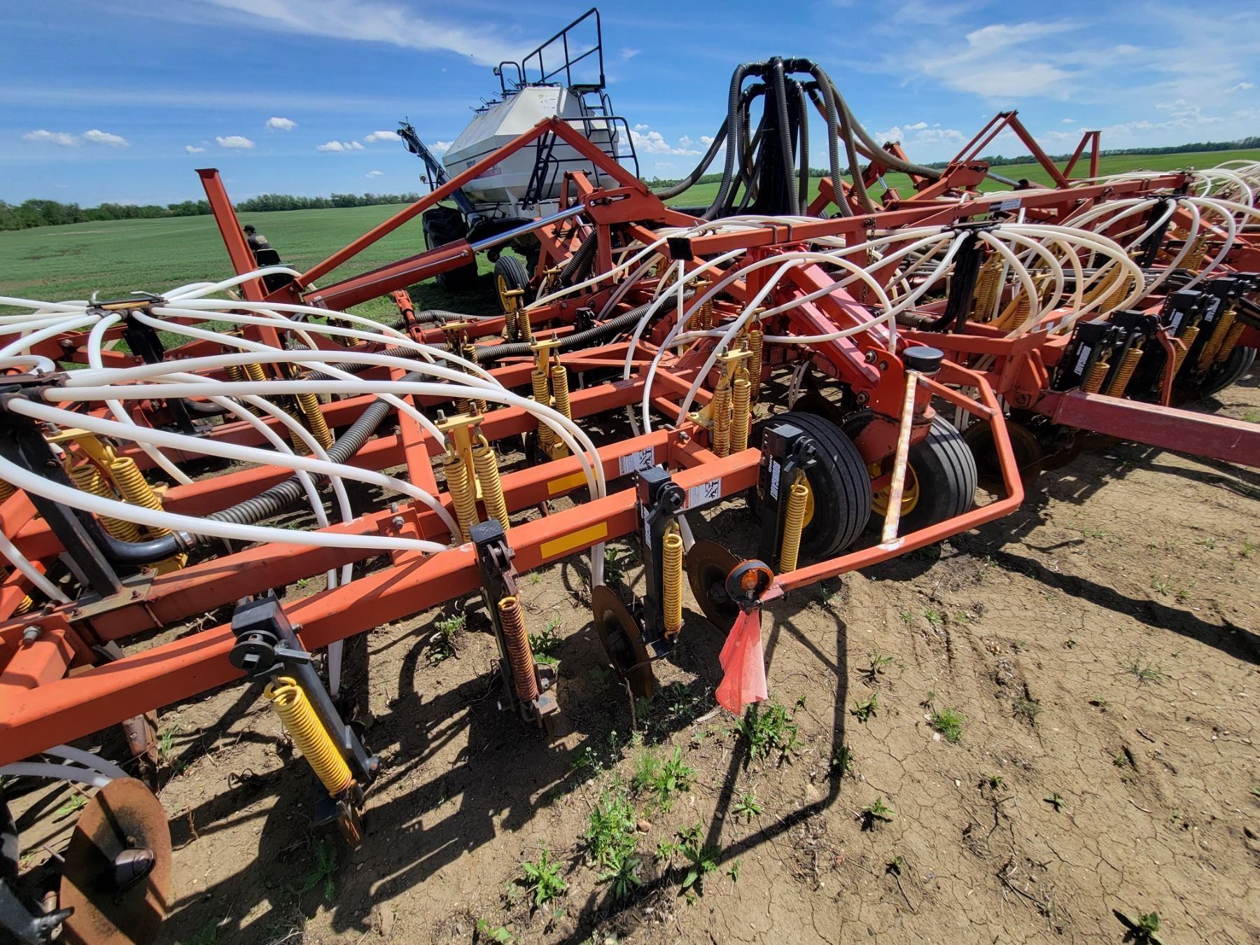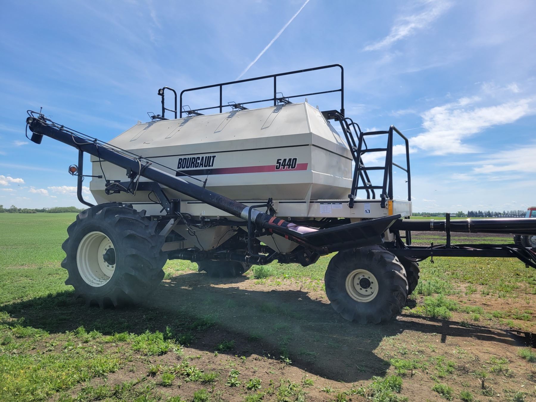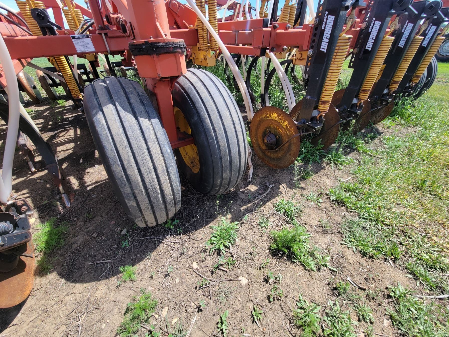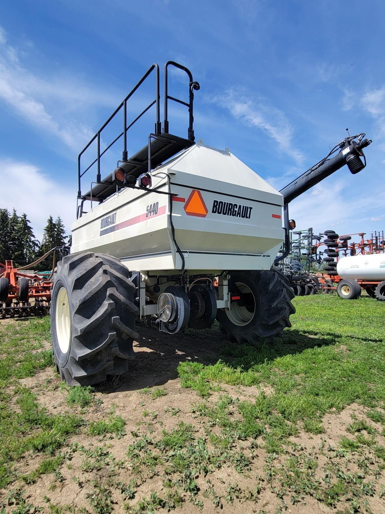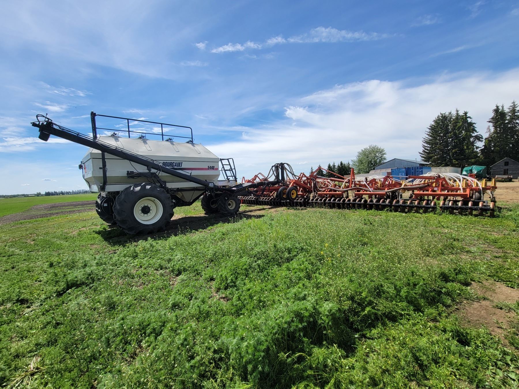 62' Bourgault 5710 Air Drill, serial 37182AH-02, approx. 10" spacing, mid row banders, double shoot, solid packers c/w 5440 3- comp. Tank. New Drive Clutch. This was purchased at the Hruschak Estate Sale, July 8th 2025 & never used since. It had a $31,000 work order in 2023 at Wask. Motors. Ph Neil (780) 512-8300. Located North of Radway