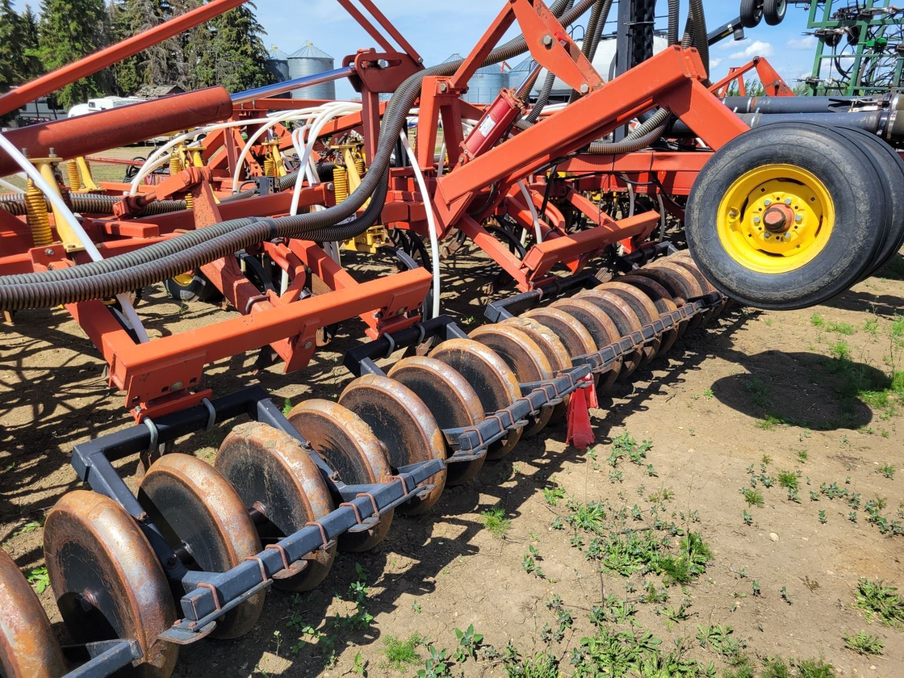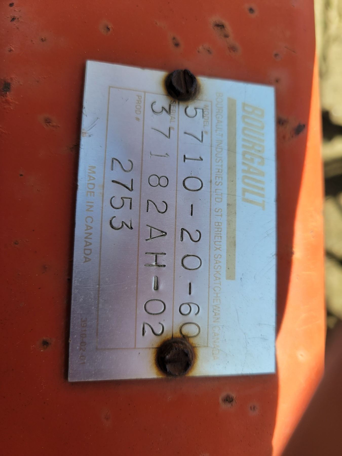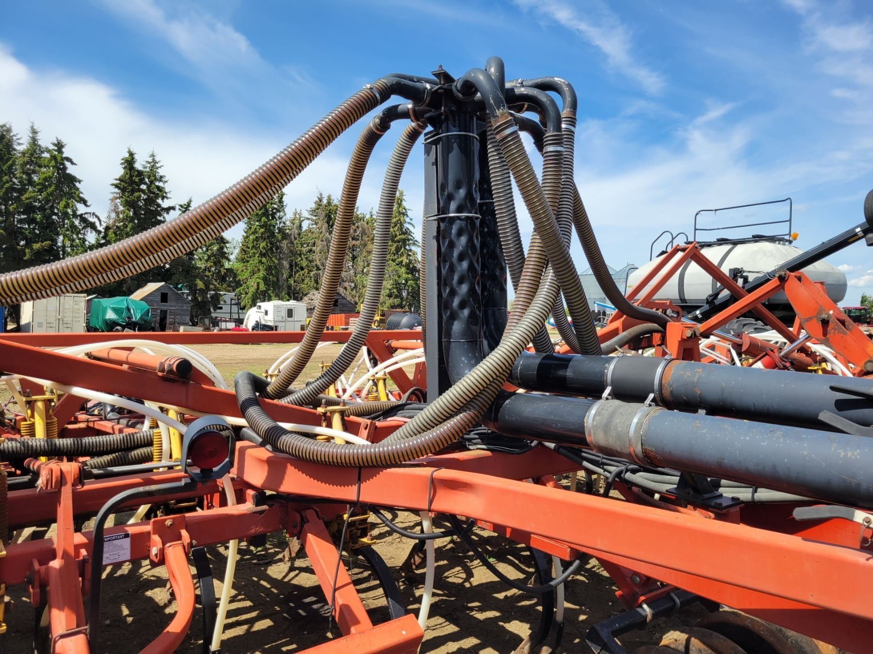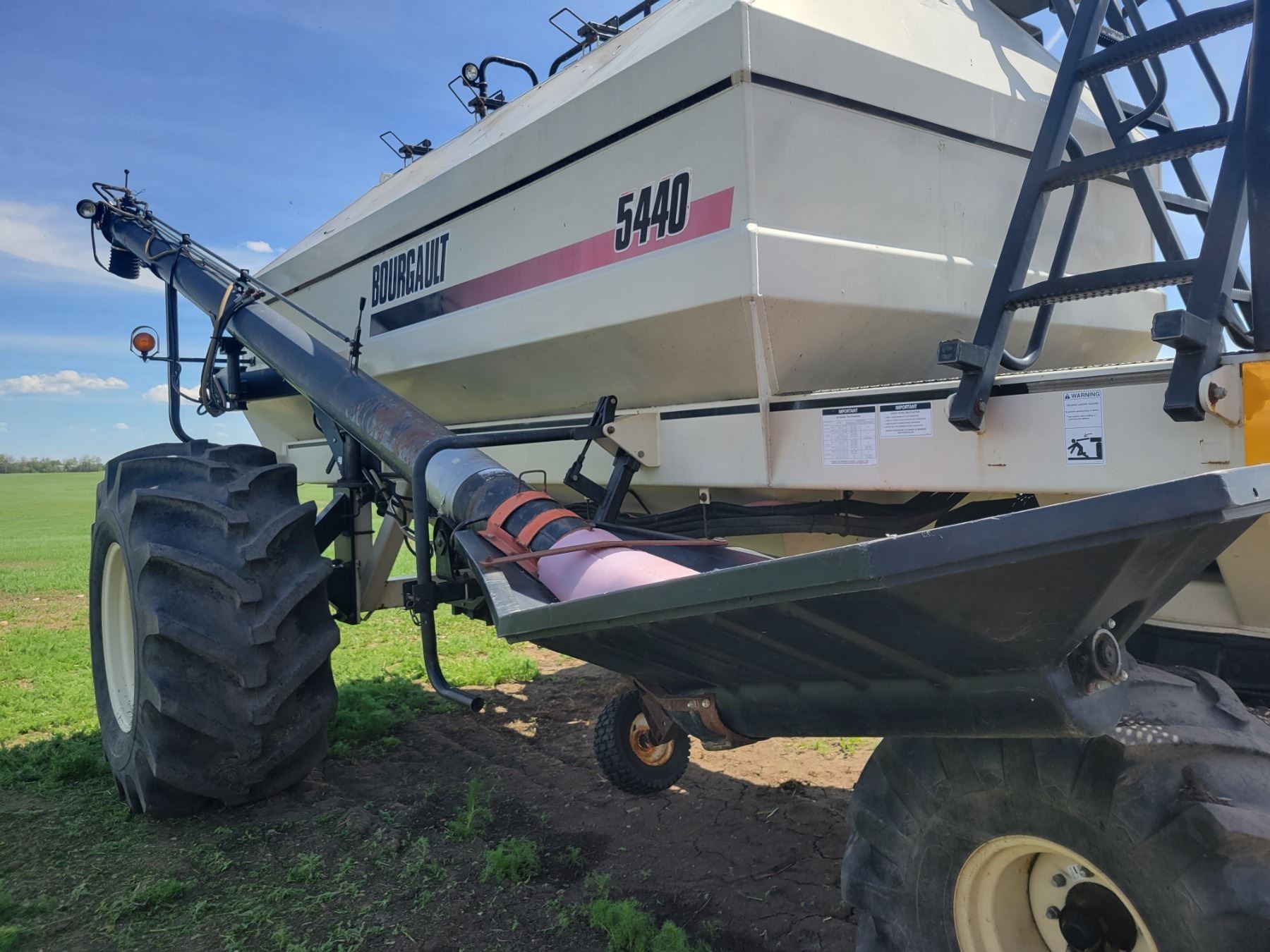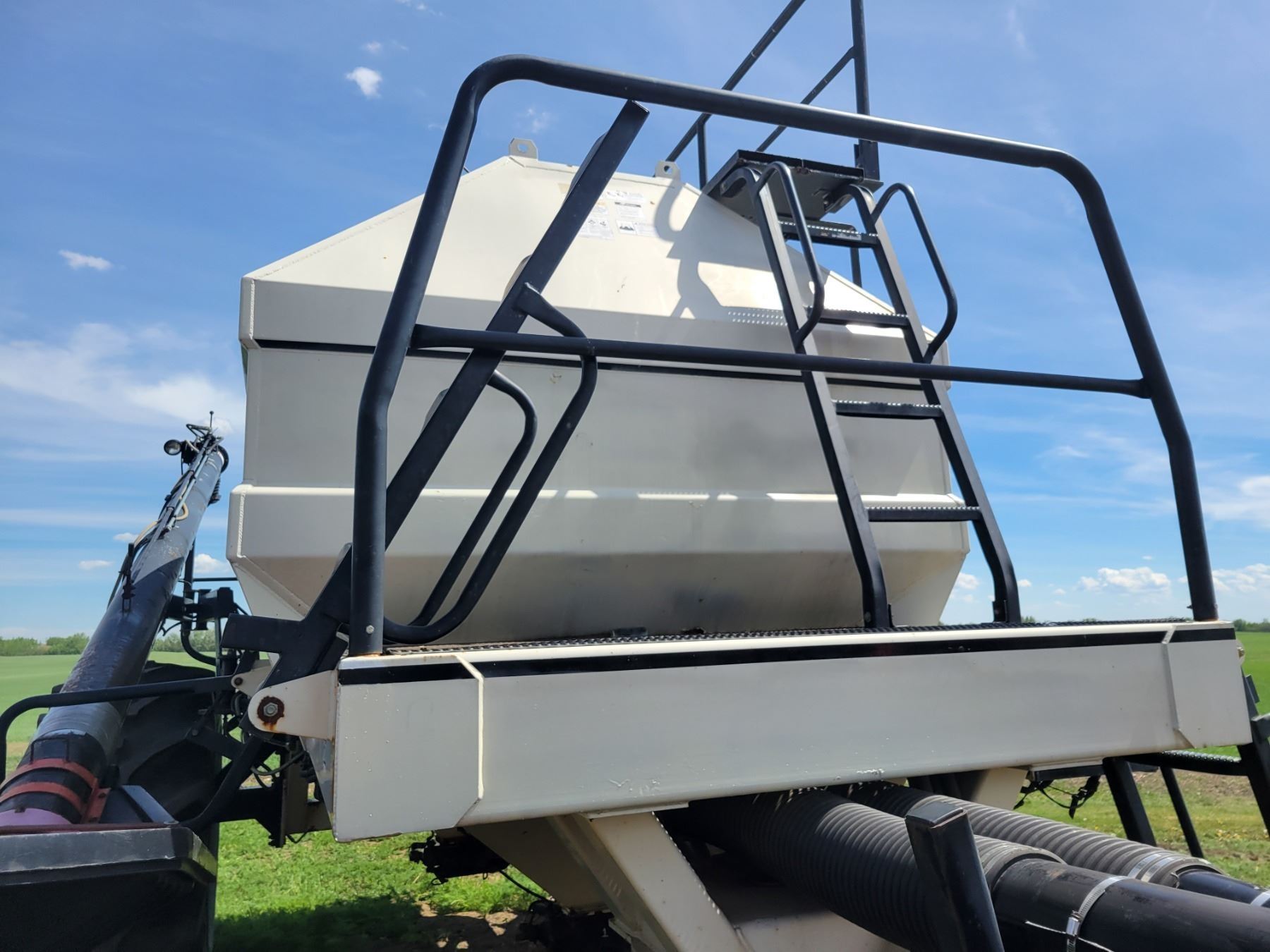 62' Bourgault 5710 Air Drill, serial 37182AH-02, approx. 10" spacing, mid row banders, double shoot, solid packers c/w 5440 3- comp. Tank. New Drive Clutch. This was purchased at the Hruschak Estate Sale, July 8th 2025 & never used since. It had a $31,000 work order in 2023 at Wask. Motors. Ph Neil (780) 512-8300. Located North of Radway