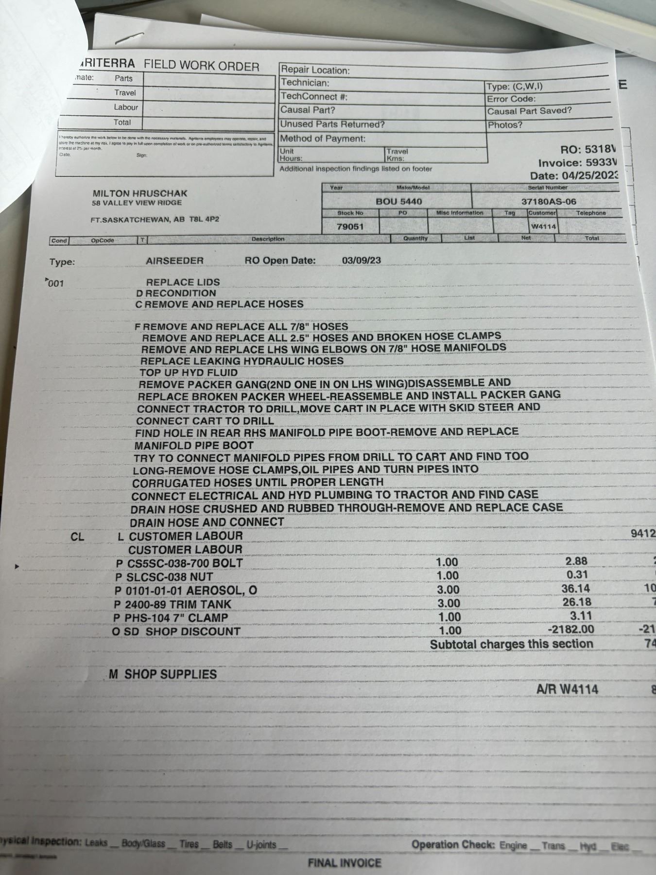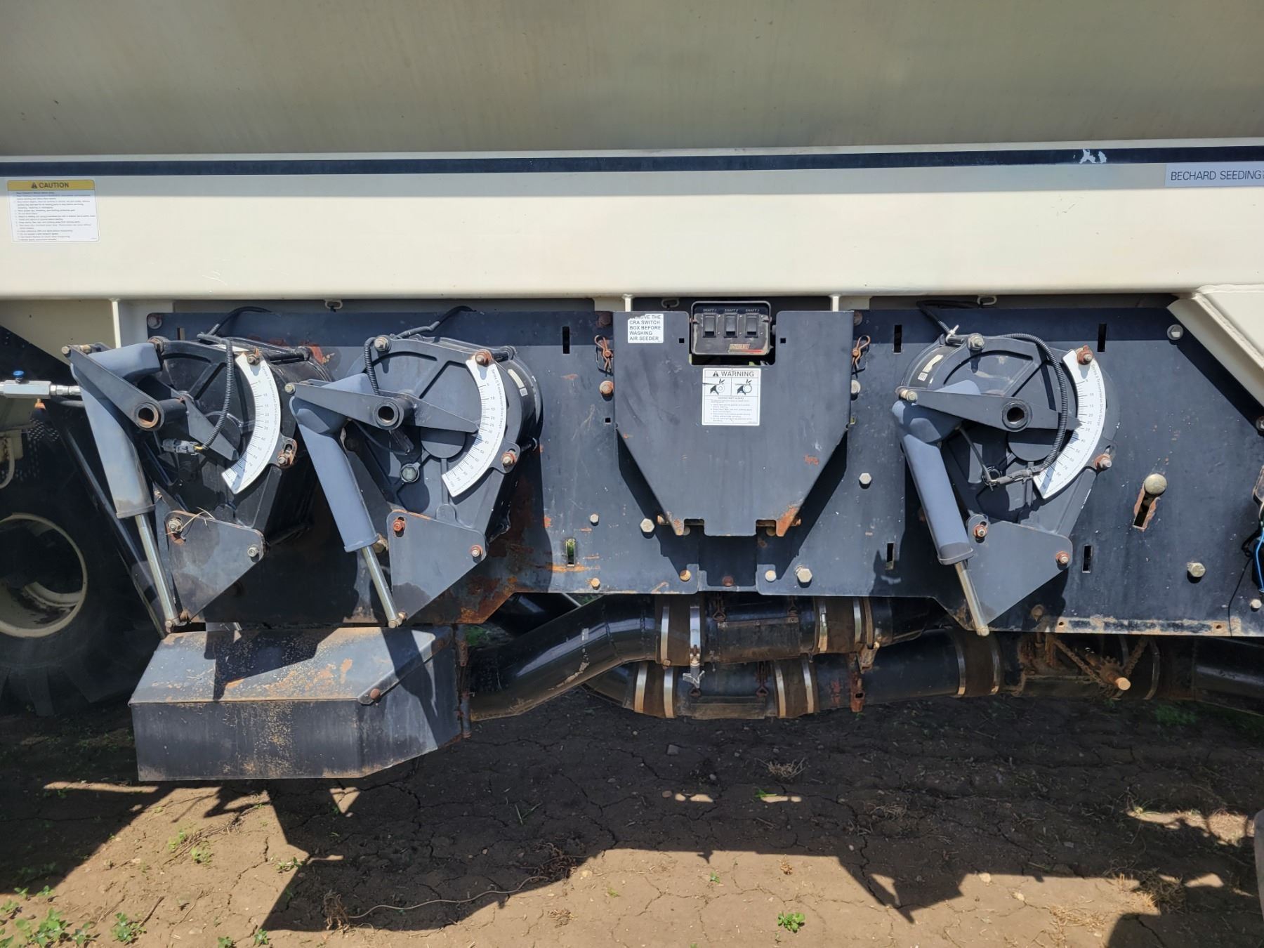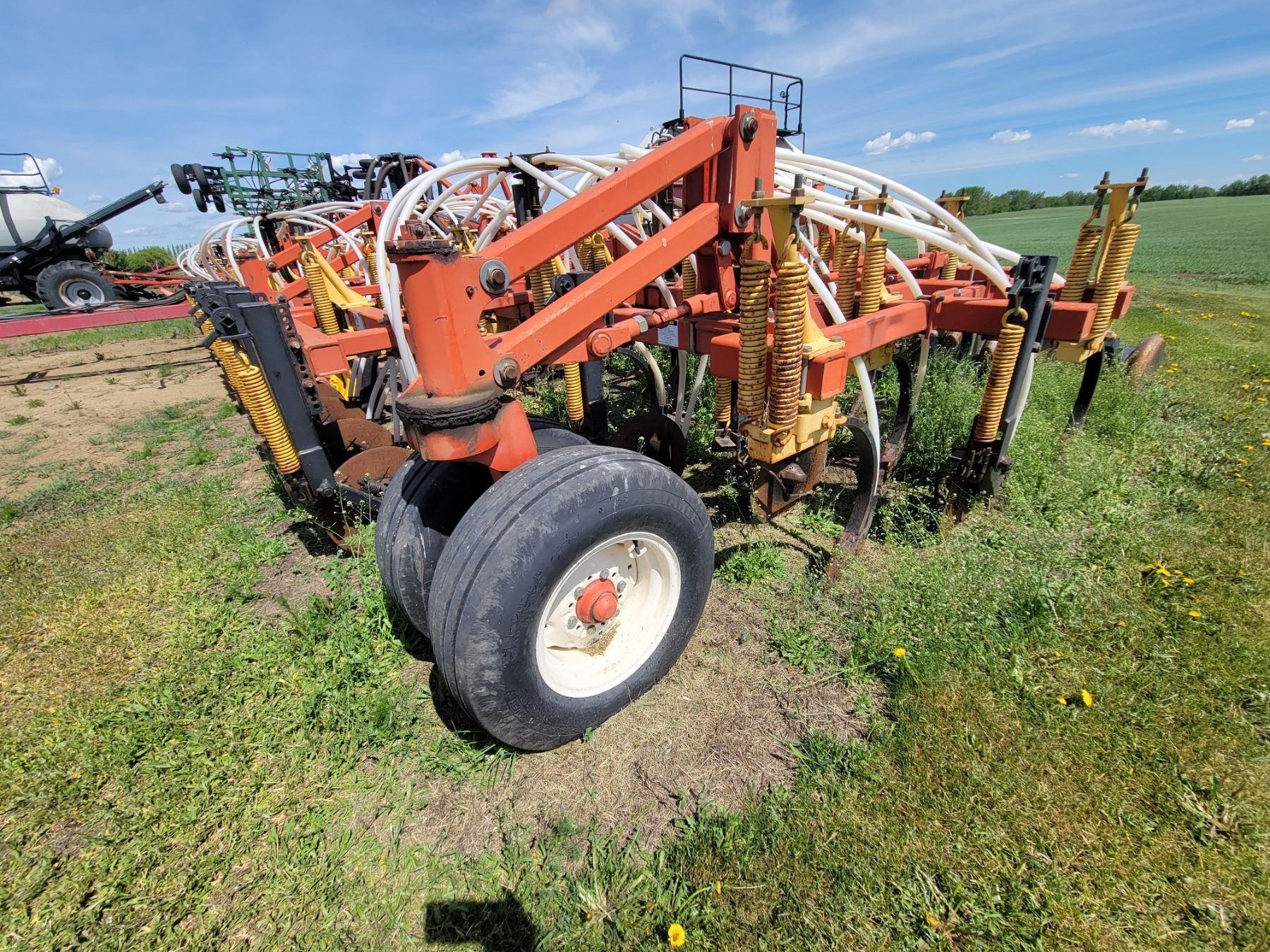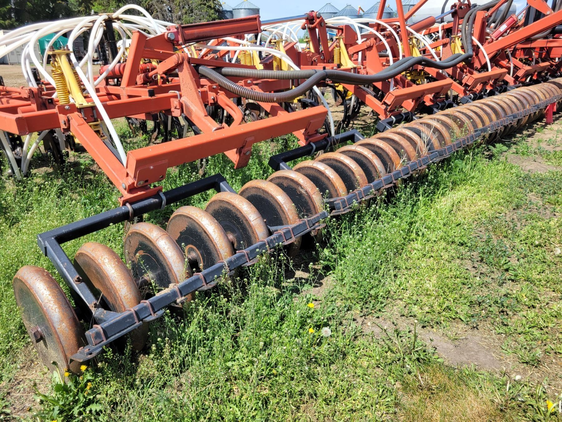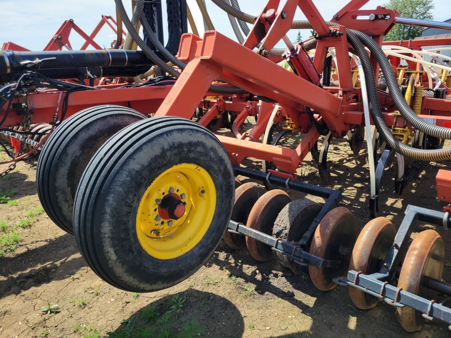 62' Bourgault 5710 Air Drill, serial 37182AH-02, approx. 10" spacing, mid row banders, double shoot, solid packers c/w 5440 3- comp. Tank. New Drive Clutch. This was purchased at the Hruschak Estate Sale, July 8th 2025 & never used since. It had a $31,000 work order in 2023 at Wask. Motors. Ph Neil (780) 512-8300. Located North of Radway