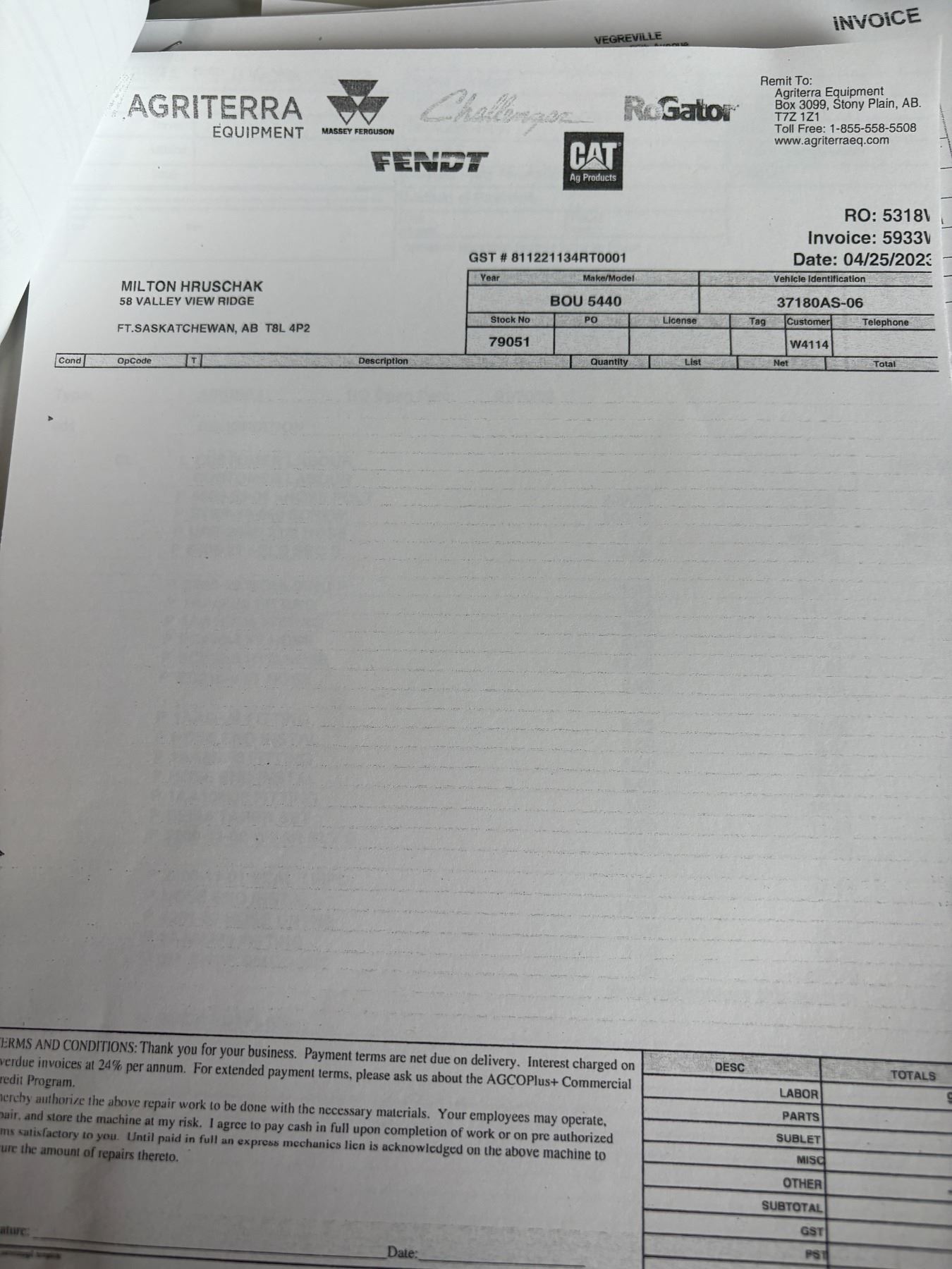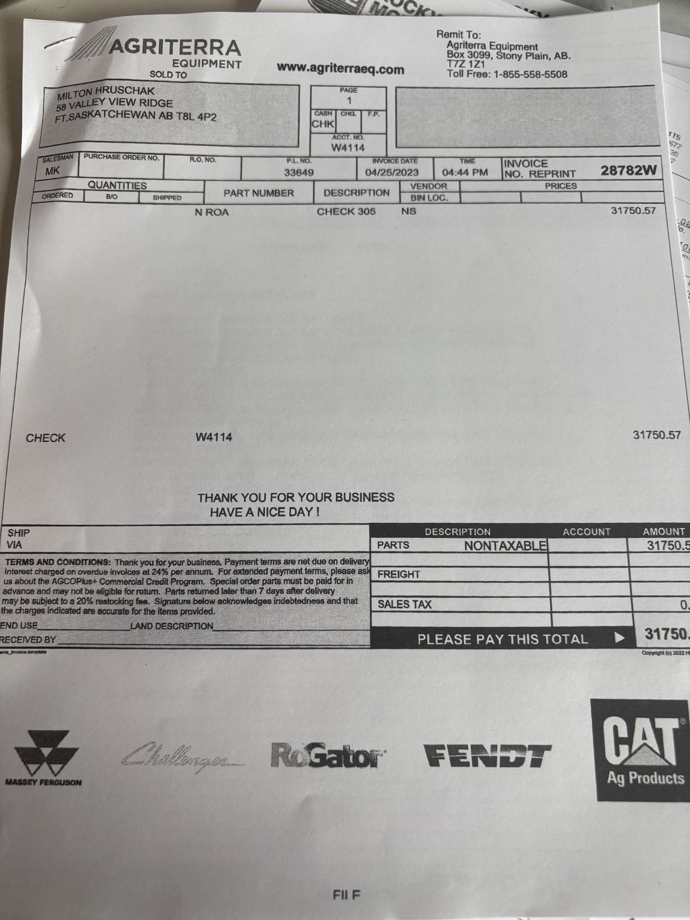 PAYMENT IN FULL: May 6th, 9-5pm On Location or by PH 780-446-9555