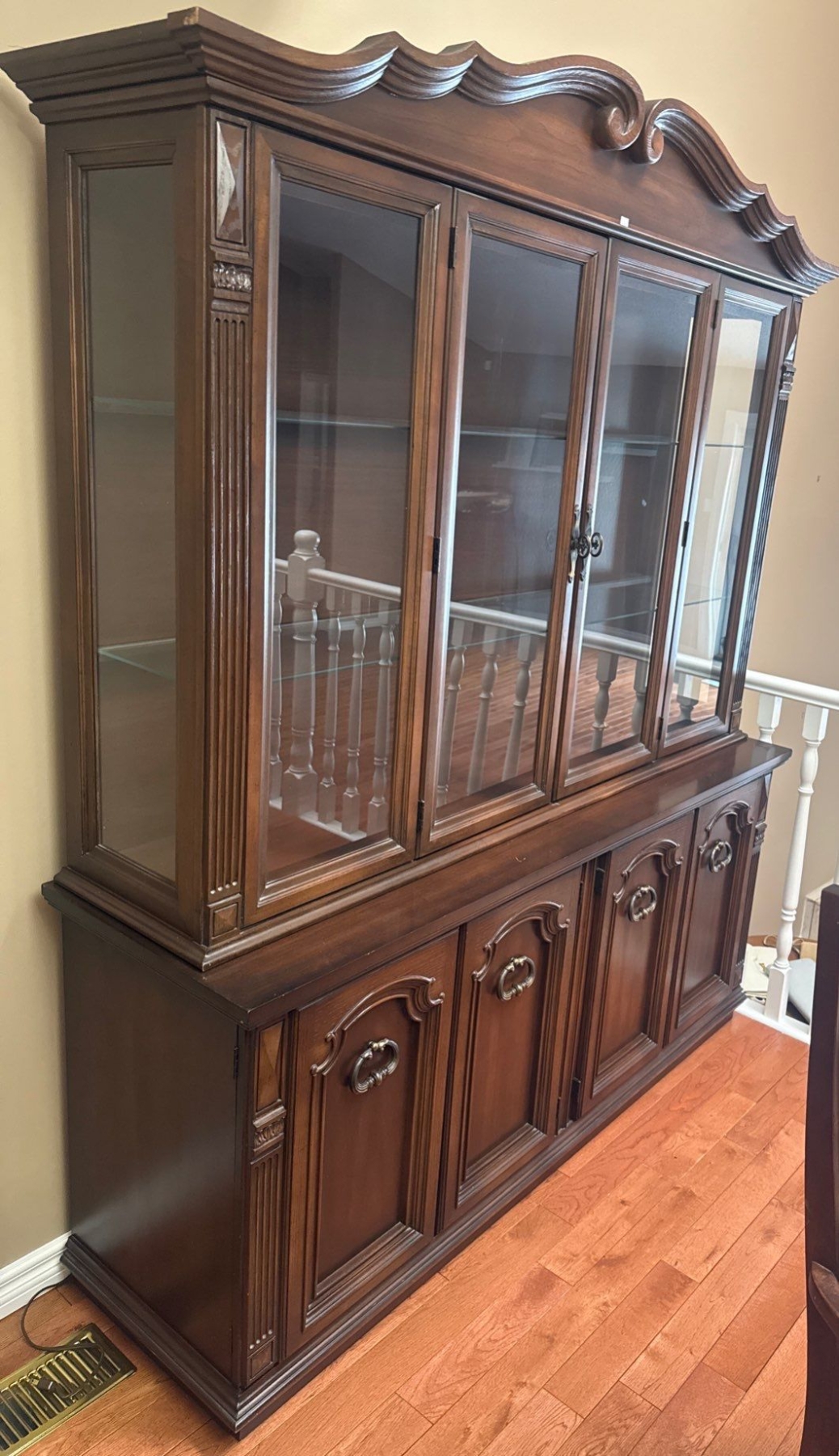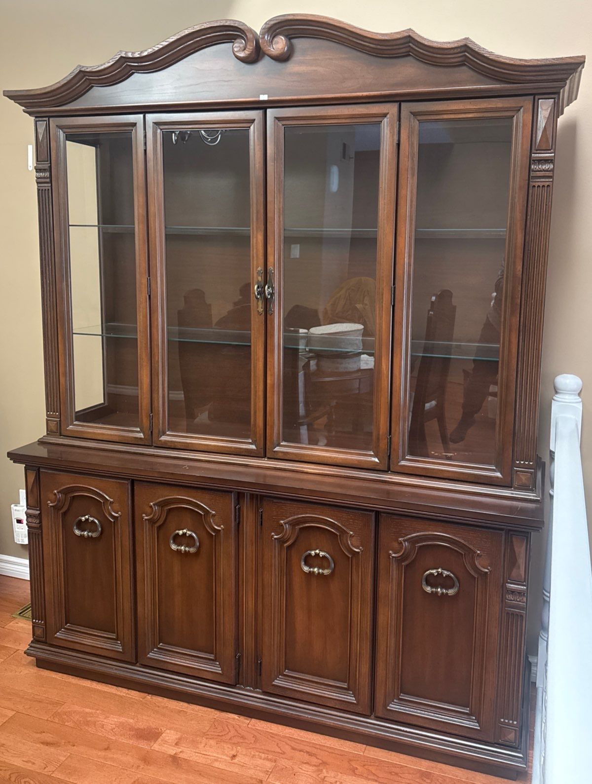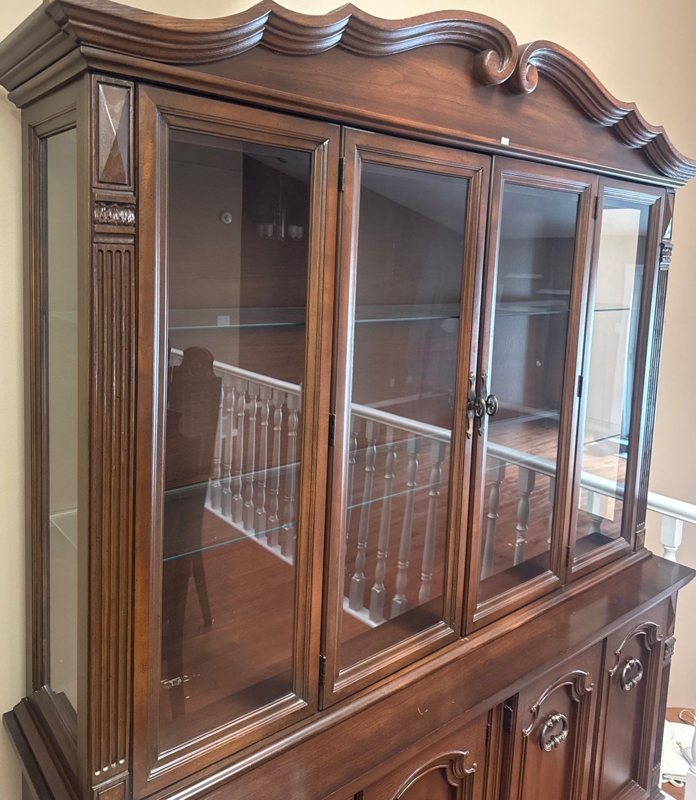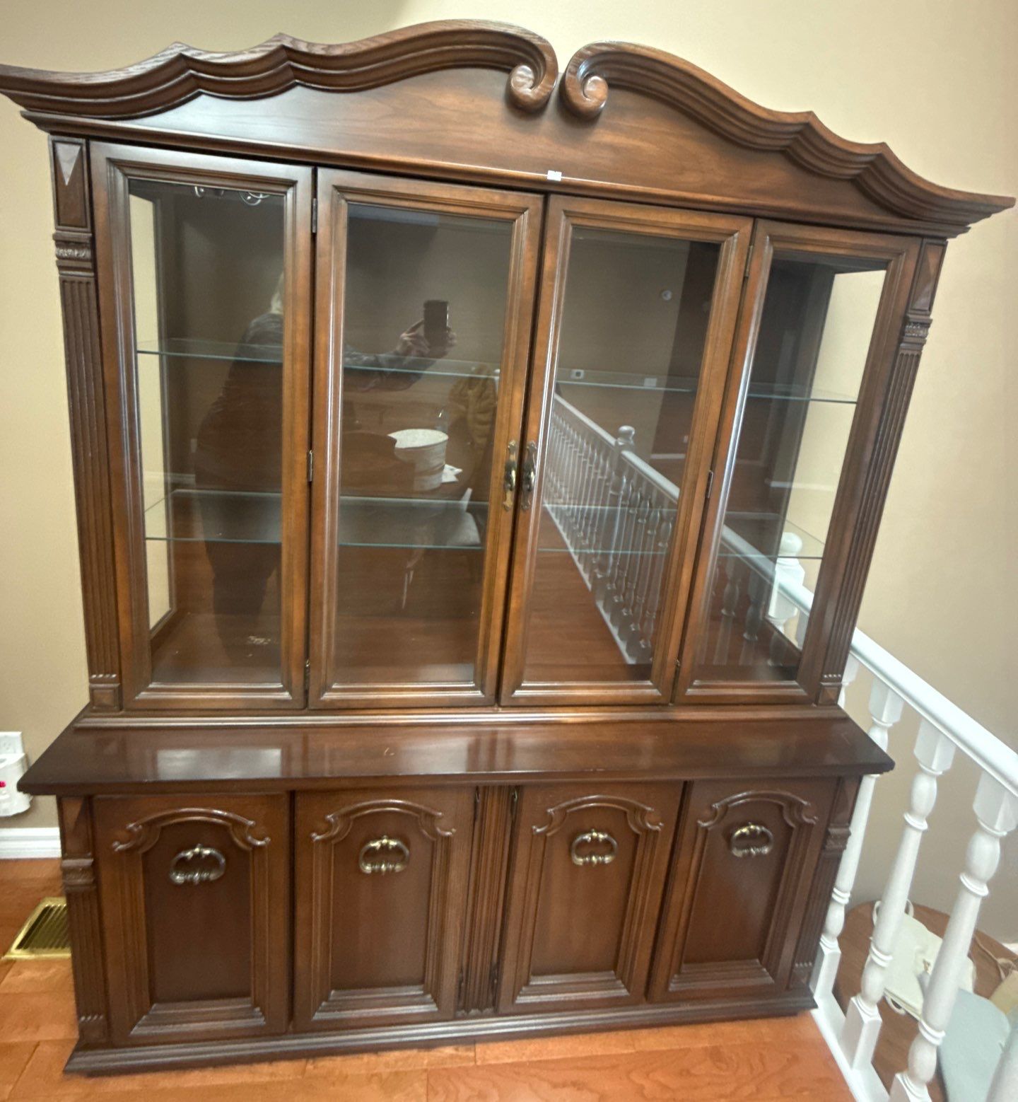 Beautiful Elegant China Cabinet/Hutch w/Glass Doors & Bottom Cupboards 60x19x82t