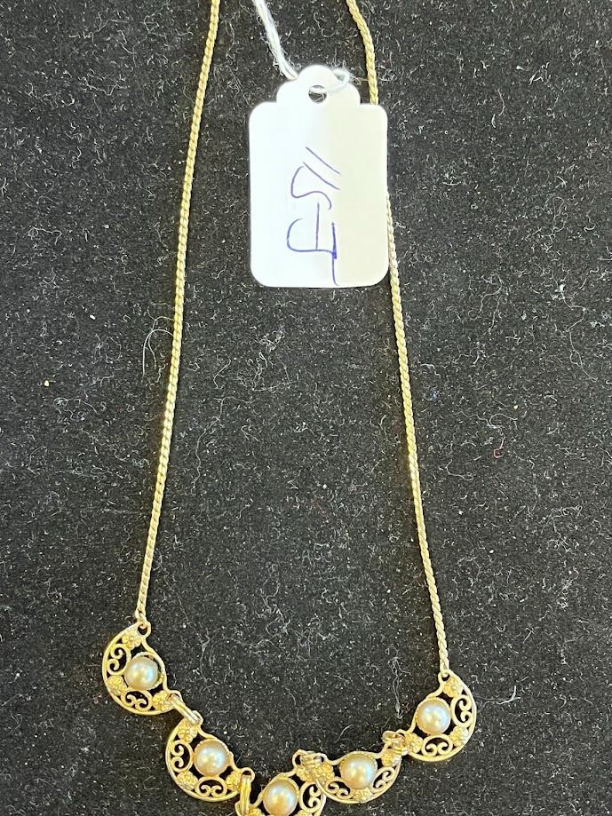 Lot 115JB ANTIQUE GOLD NECKLACE W PEARLS