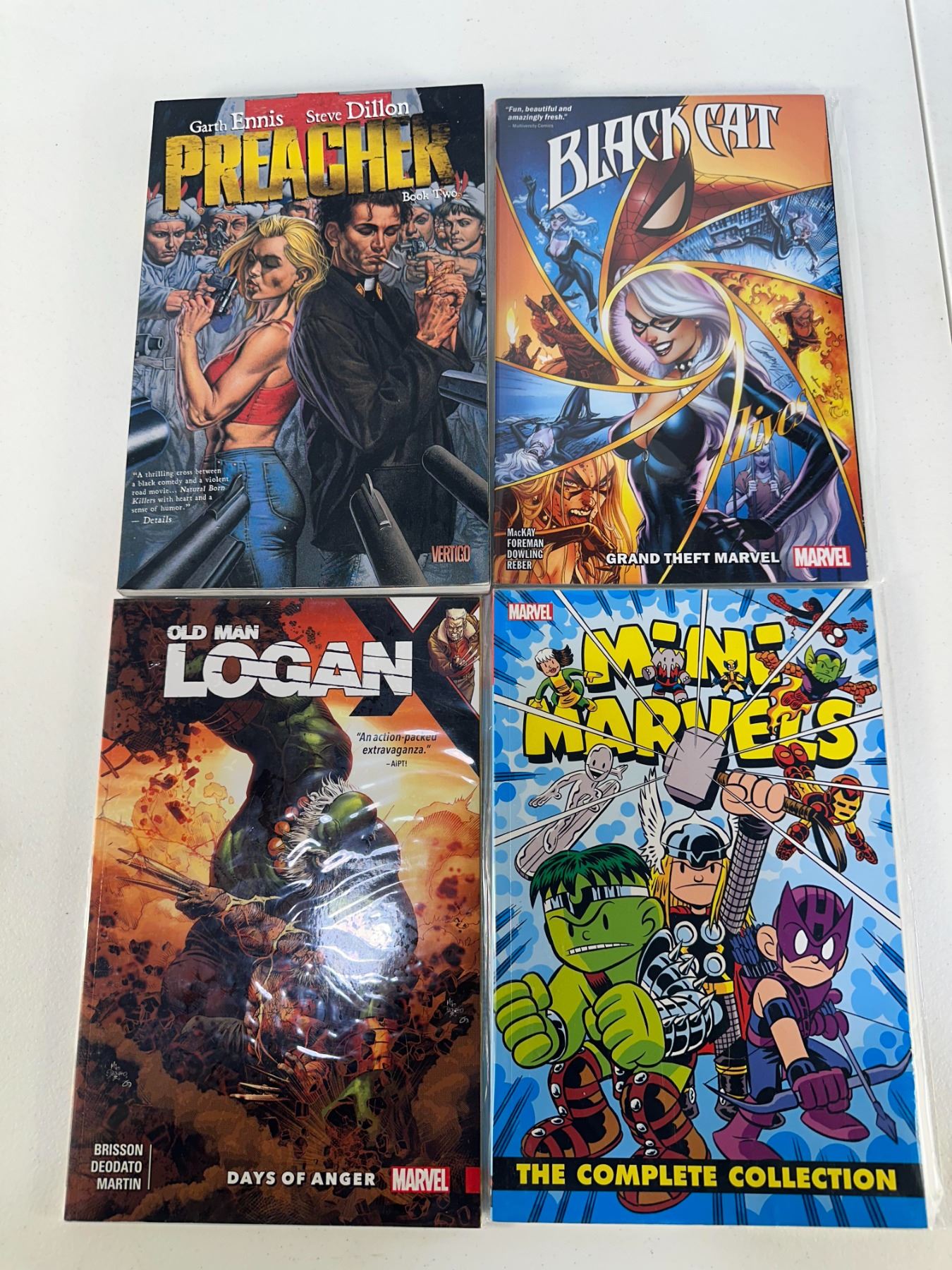 Lot 16A Graphic Novel Lot: Preacher Book 2, Black Cat, Old Man Logan & Mini Marvels Collection
