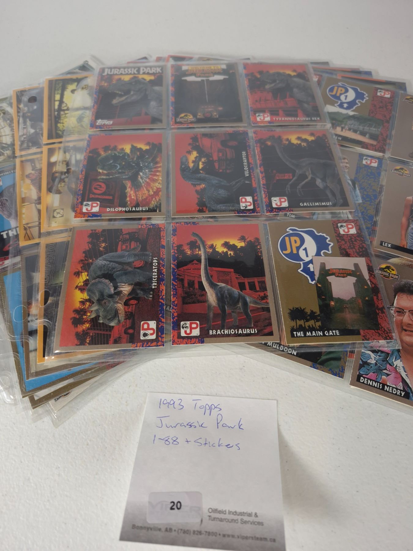 Lot 20 1993 Topps Jurassic Park Trading Card Set (1-88) with Stickers