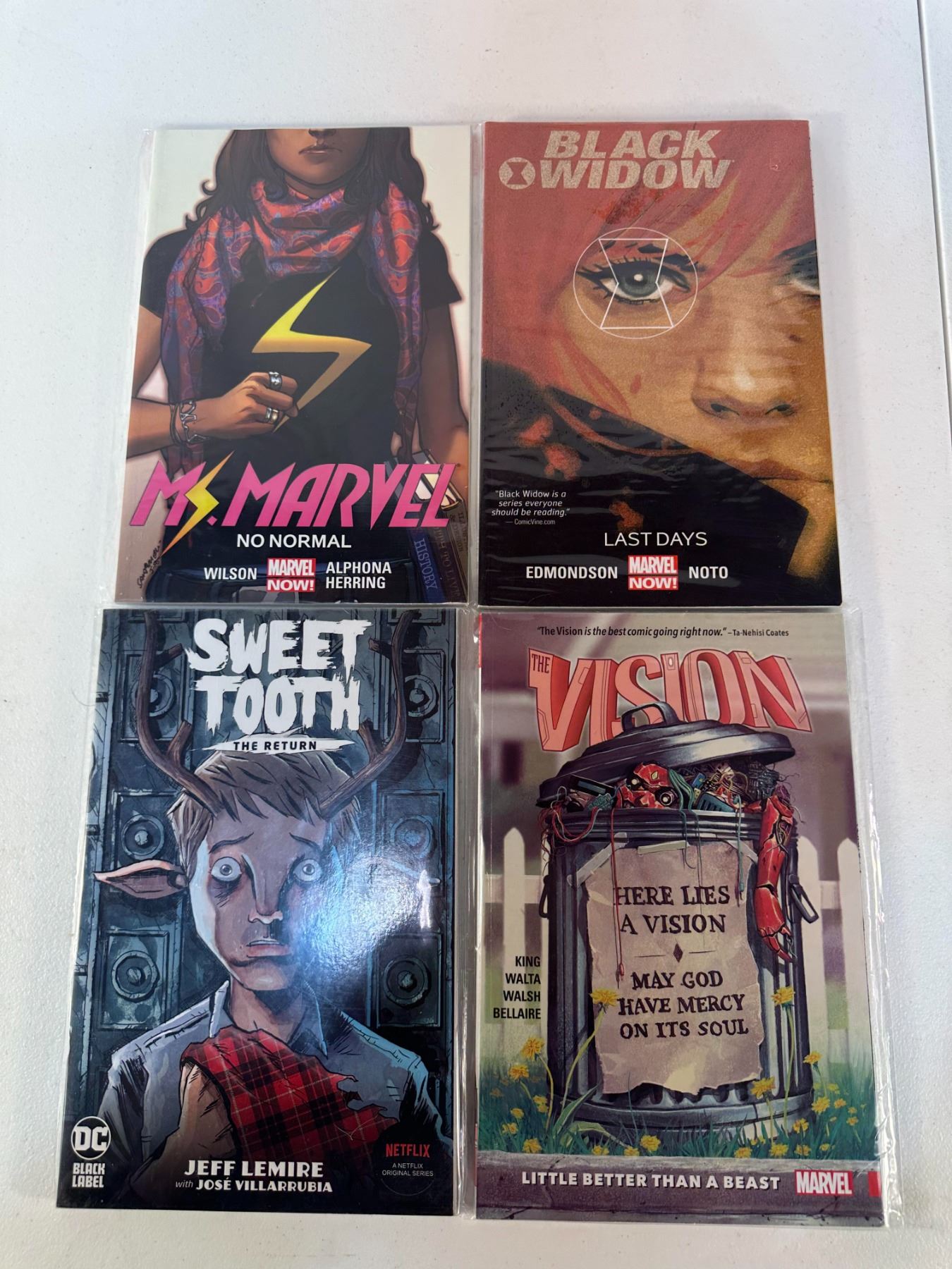 Lot 21A Graphic Novel Lot: Ms. Marvel, Black Widow Last Days, Sweet Tooth & The Vision