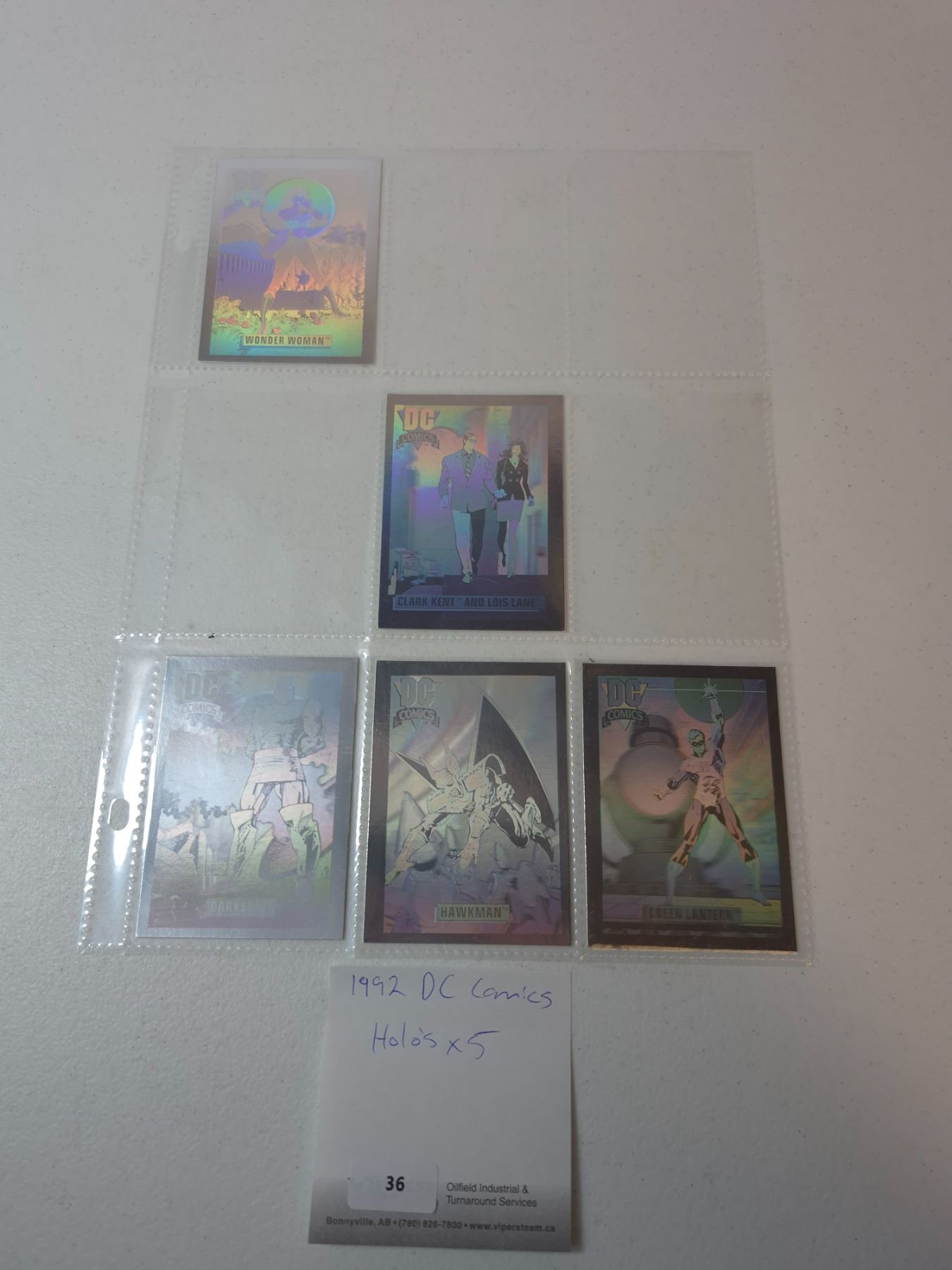 Lot 36 1992 DC Comics Hologram Trading Card Lot (5 Cards) - Wonder Woman, Green Lantern & More