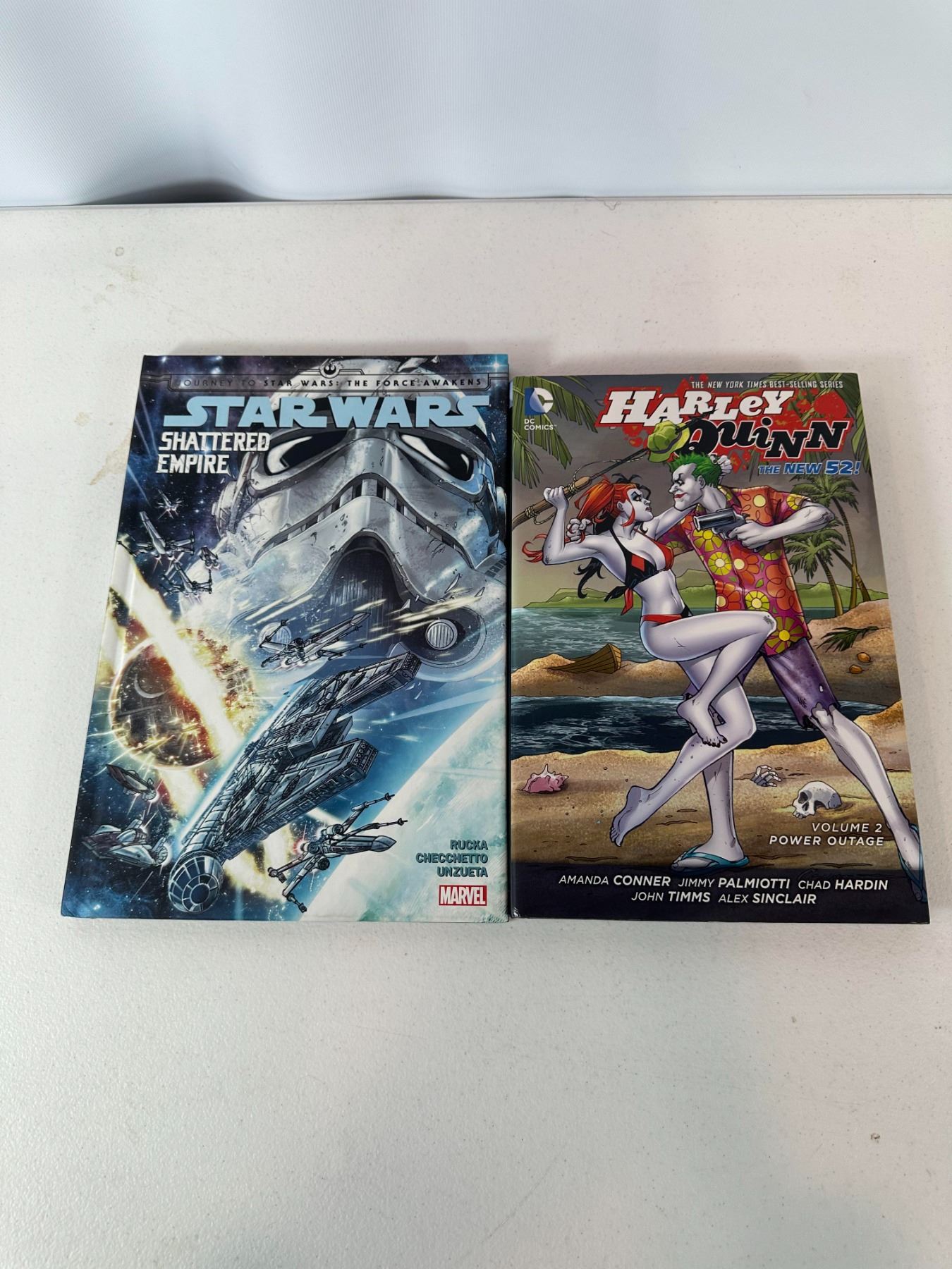 Lot of two graphic novels: Marvel 'Star Wars: Shattered Empire' (Journey to The Force Awakens) and DC 'Harley Quinn Vol. 2: Power Outage (The New 52)' by Amanda Conner and Jimmy Palmiotti. Mix of sci-fi and DC comics.