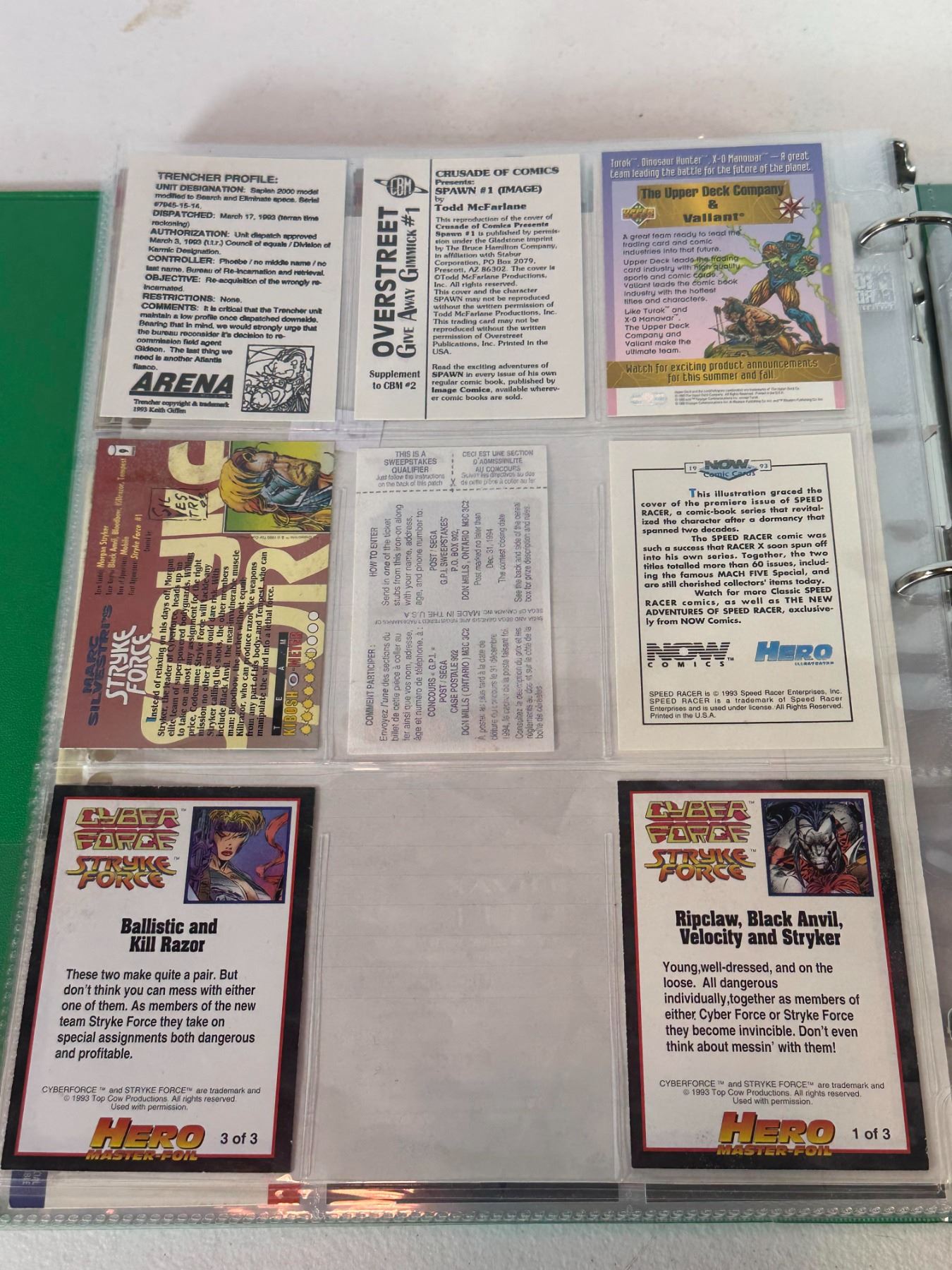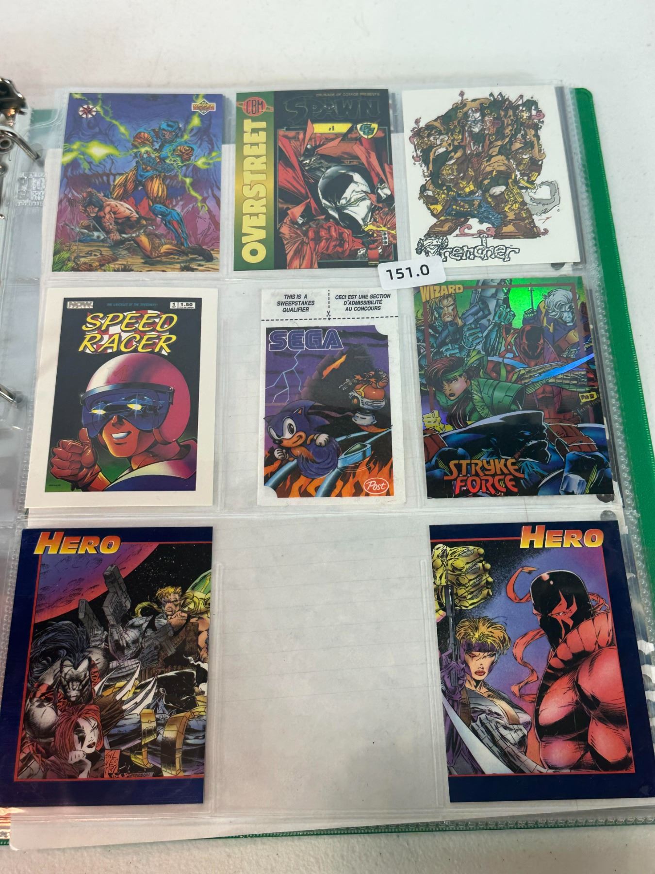 Lot 151 Mixed Trading Card Binder Page Lot (Spawn, Speed Racer, Stryke Force, Sega Promo)