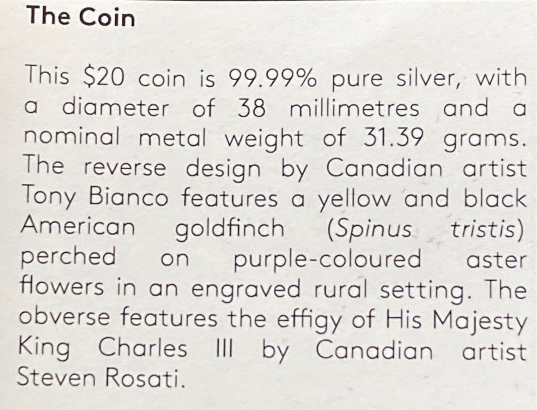 Lot 80 2024 $20 American Goldfinch Fine Silver Coin 31.39 Grams