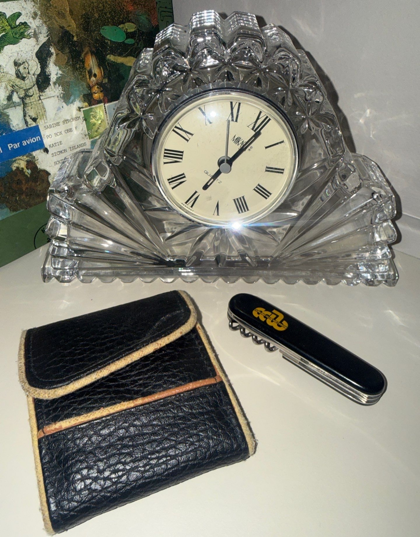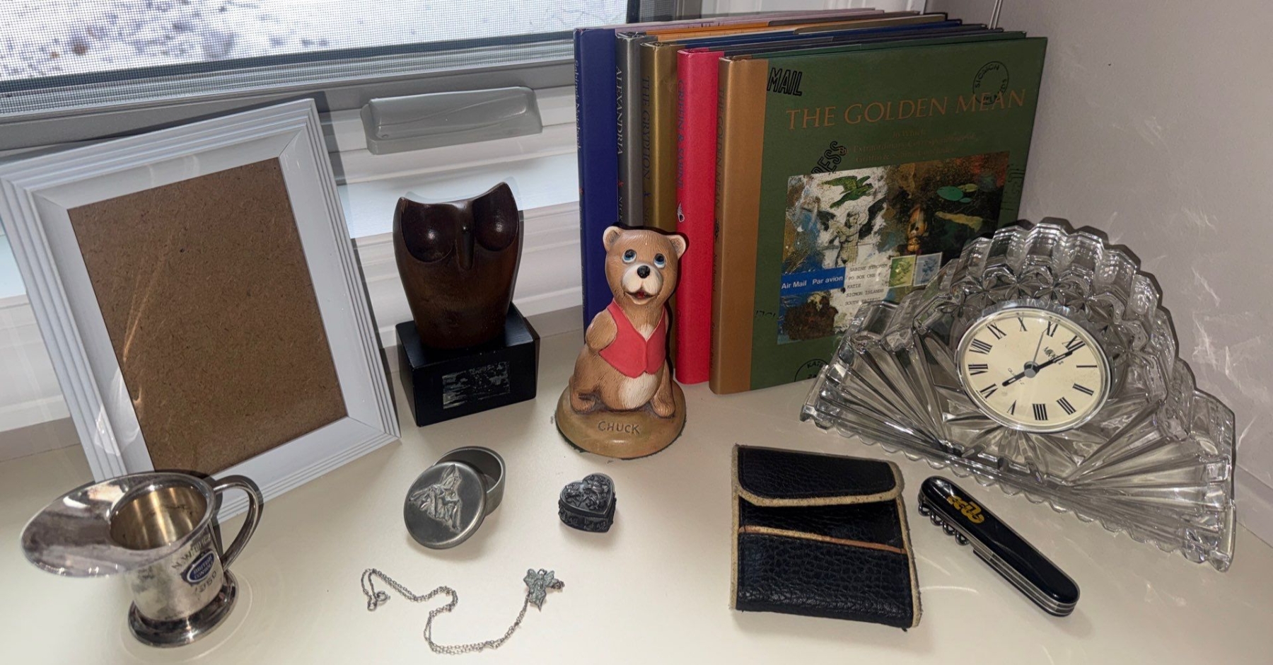 Lot 67 Waterford Crystal Mantle Clock Book Collection Pewter Trinket Boxes Handcarved Figurine & more