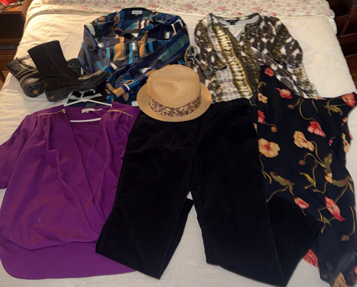 Lot 75 Spring Essentials - Genuine Leather Ankle Boots Printed Tops Fedora & more - Calvin Klein & more