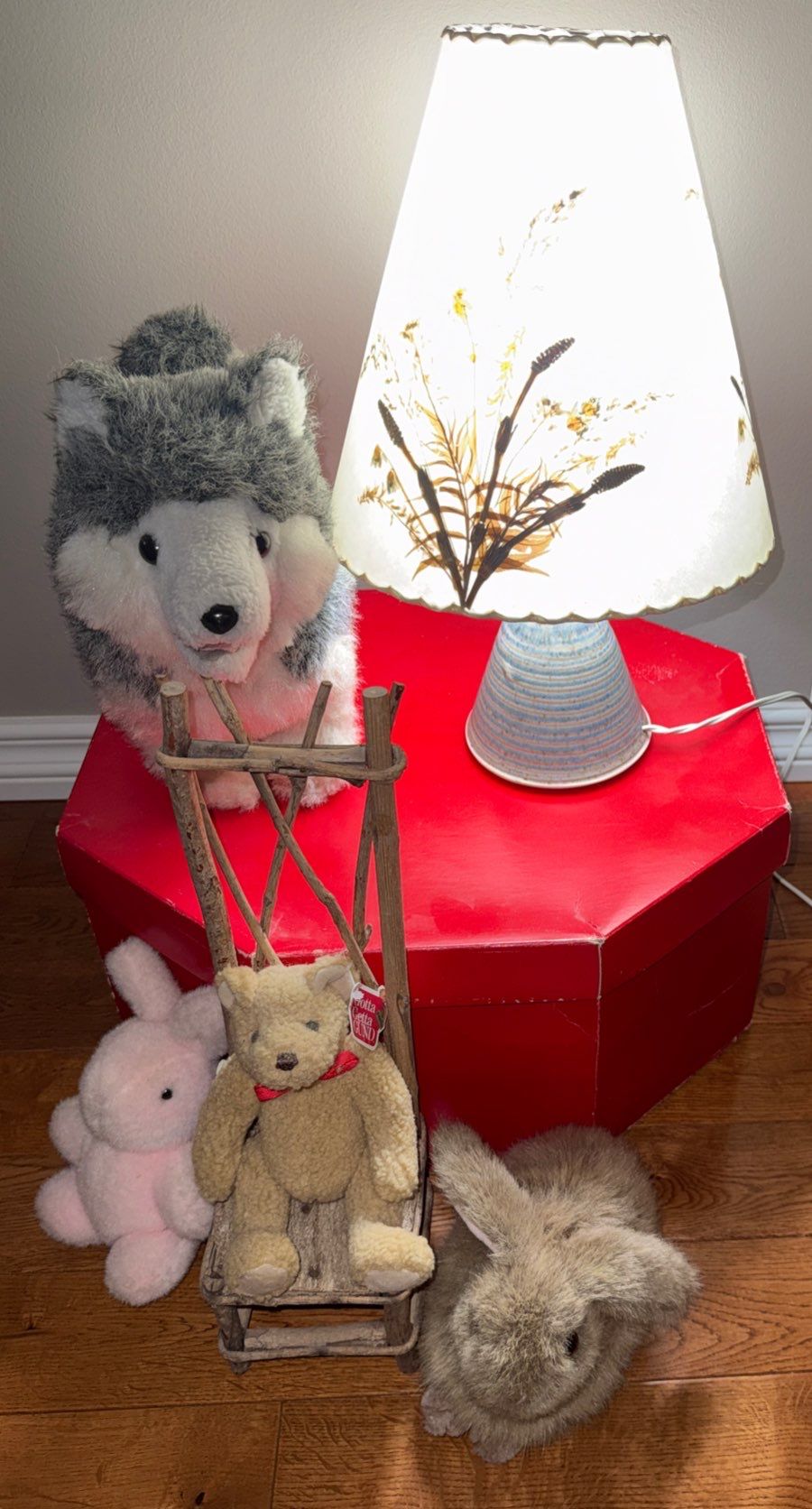 Lot 76 Unique Botanical Desk Lamp 16"Tall w/ Plush Collection - Hat Box Not Included