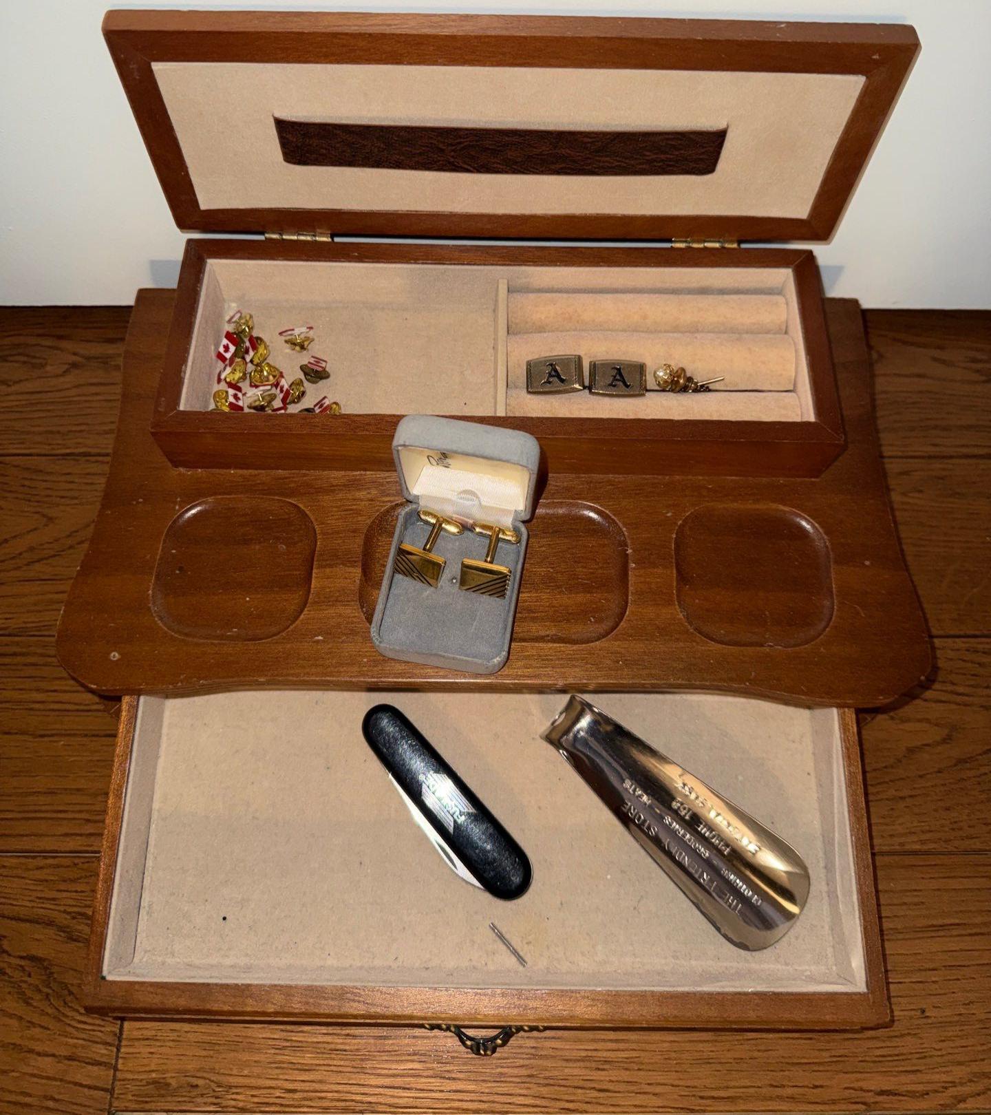 Lot 88 For The Fella's - Oak Jewelry Chest Cufflink Collection New Genuine Leather Wallet & more