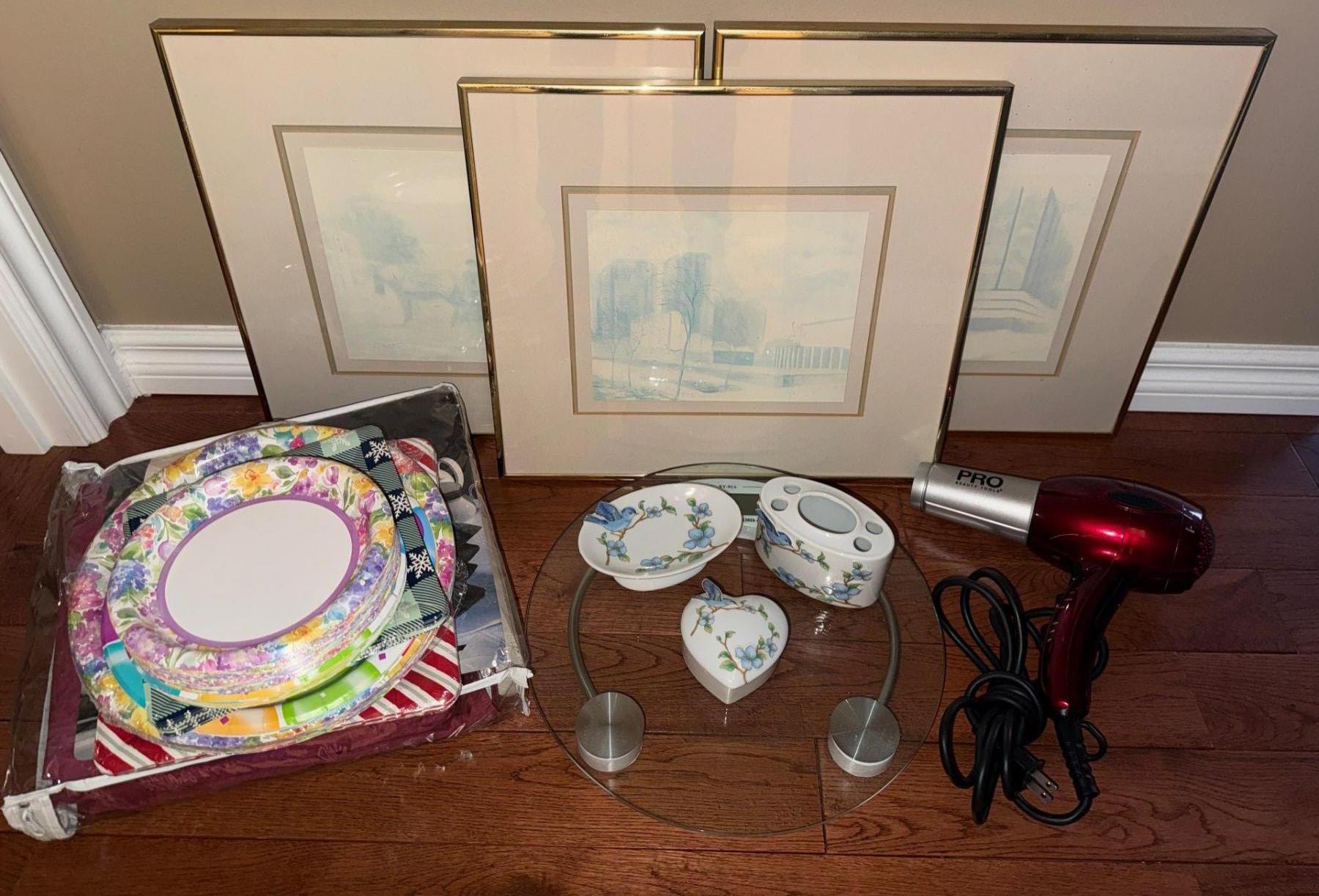 Lot 89 Misc. Goods Collection - Art Bathroom Decor Hair Dryer Single Use Plates & More