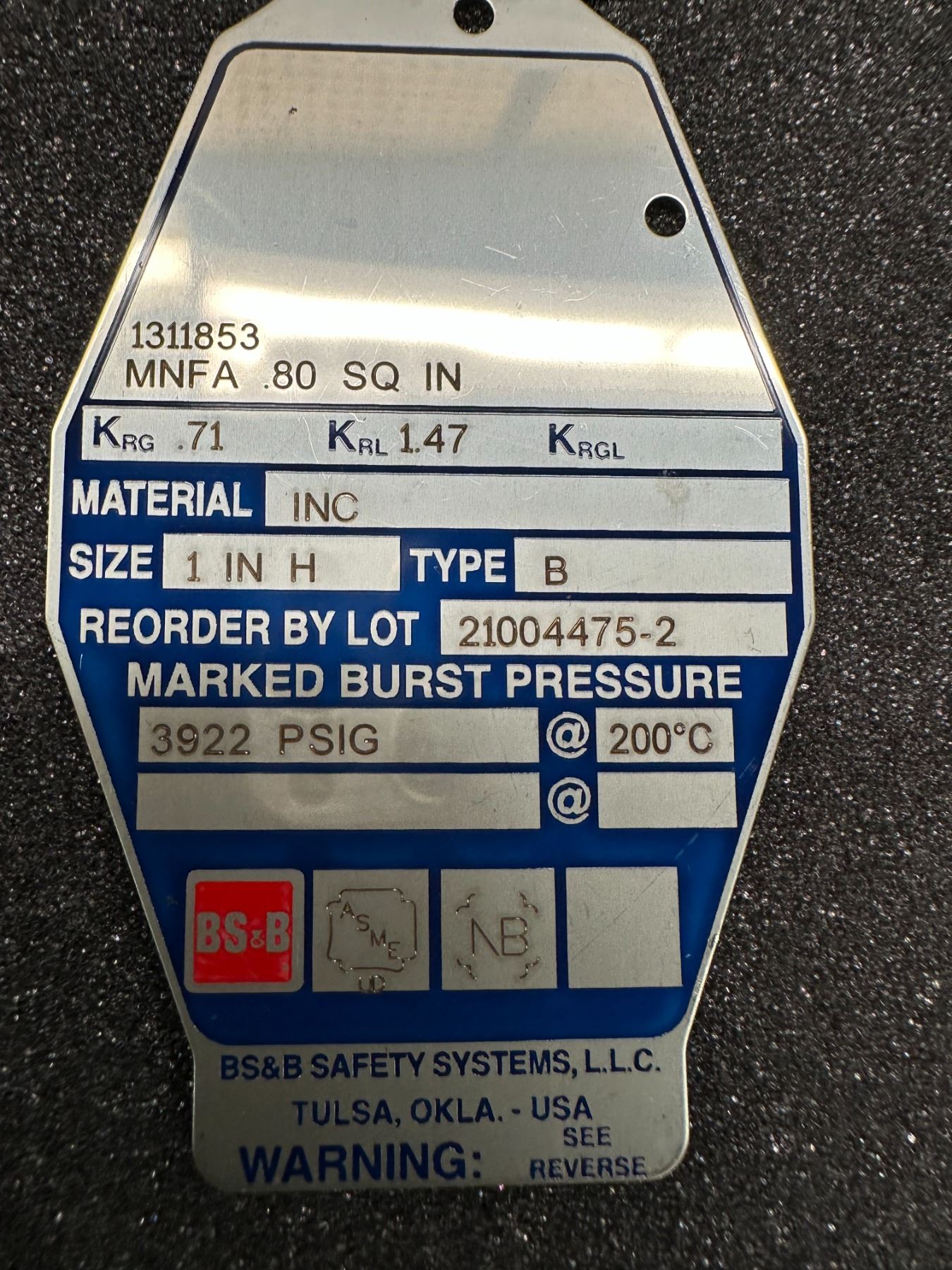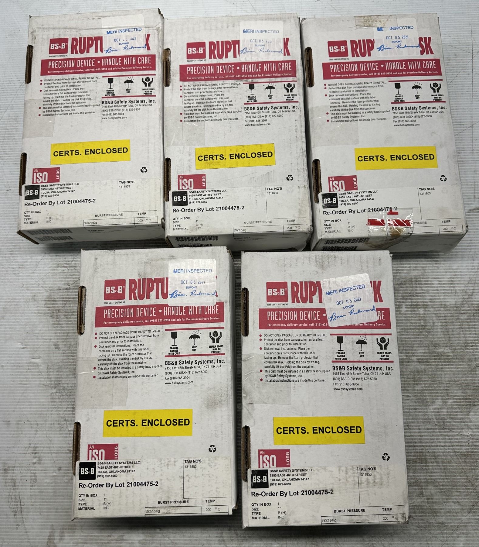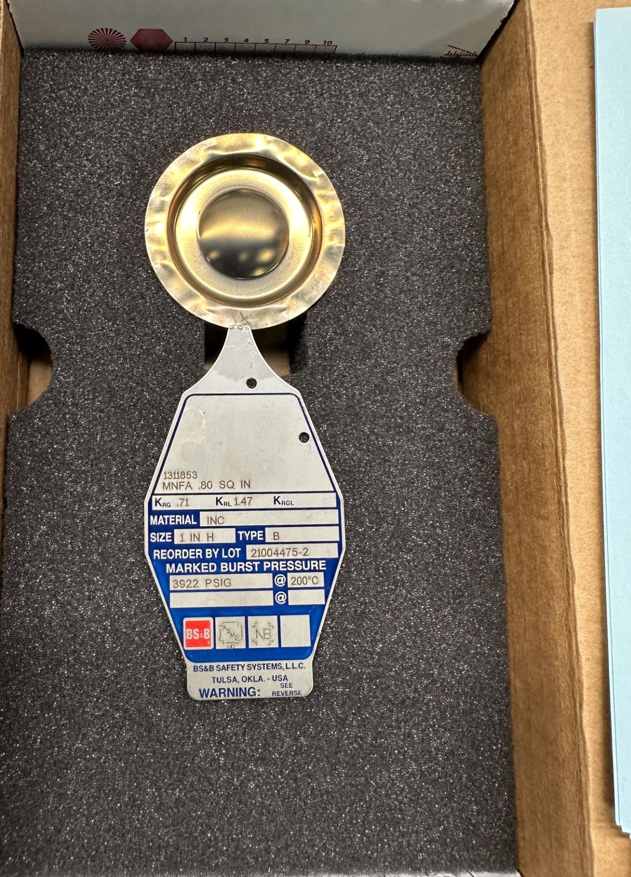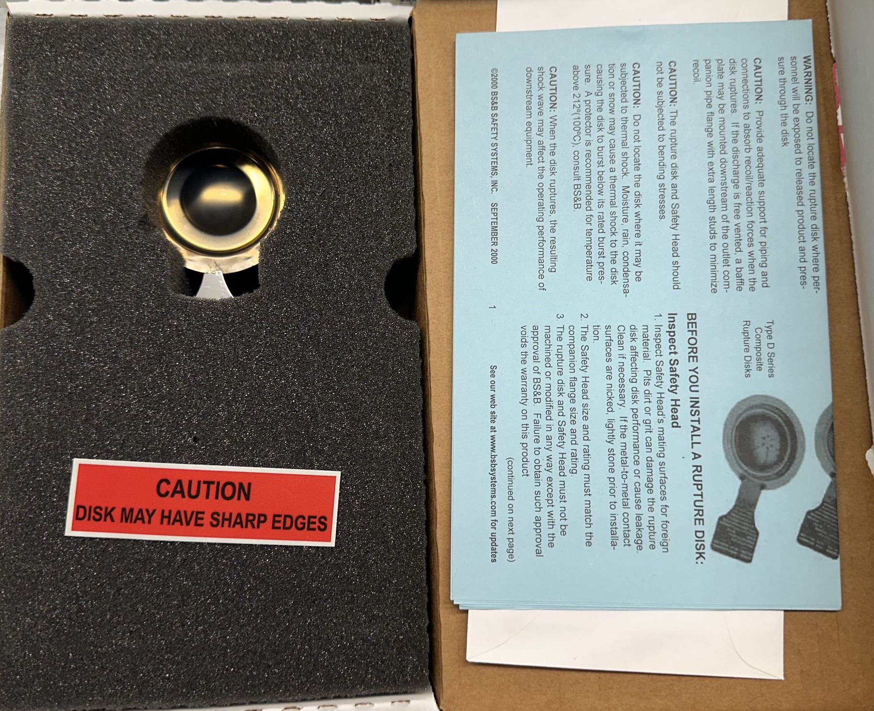 Lot 806 (5) BS&B Safety #21004475-2 Rupture Disc Burst Pressure 3922PSI(G) @ 200 Degrees C