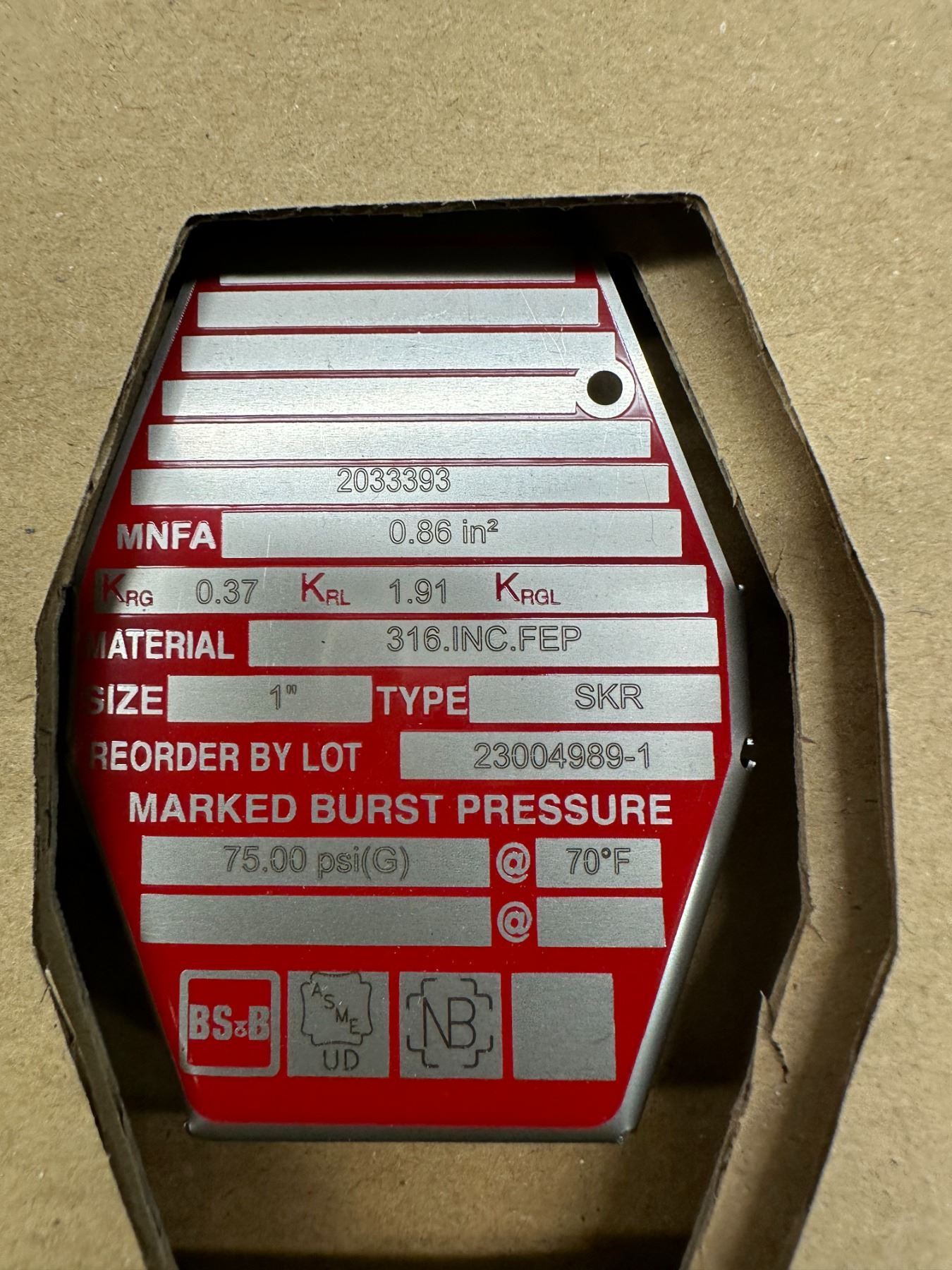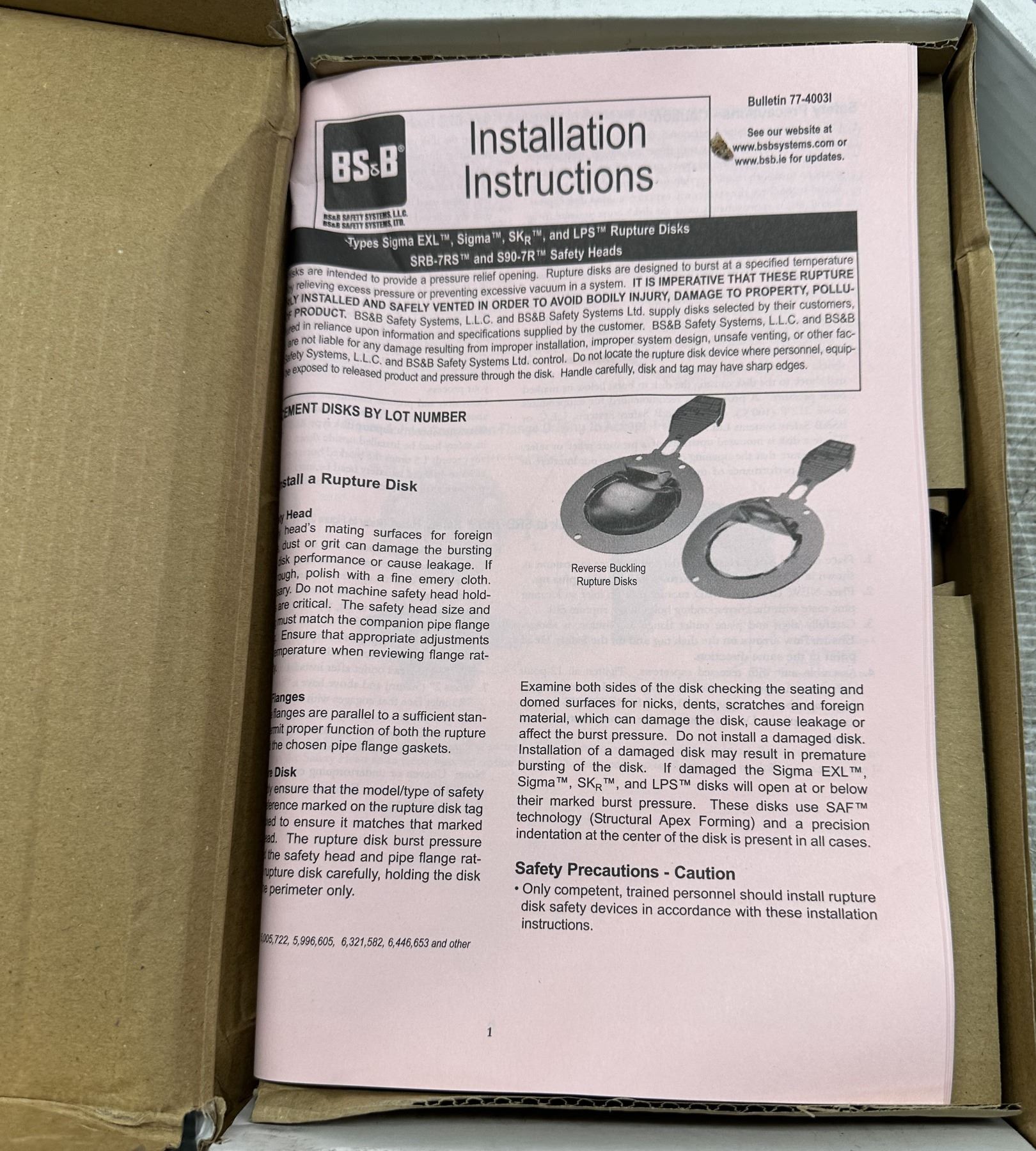 Lot 811 (2) BS&B Safety #23004989-1 Rupture Disc Burst Pressure 75.00PSI(G) @ 70 Degrees