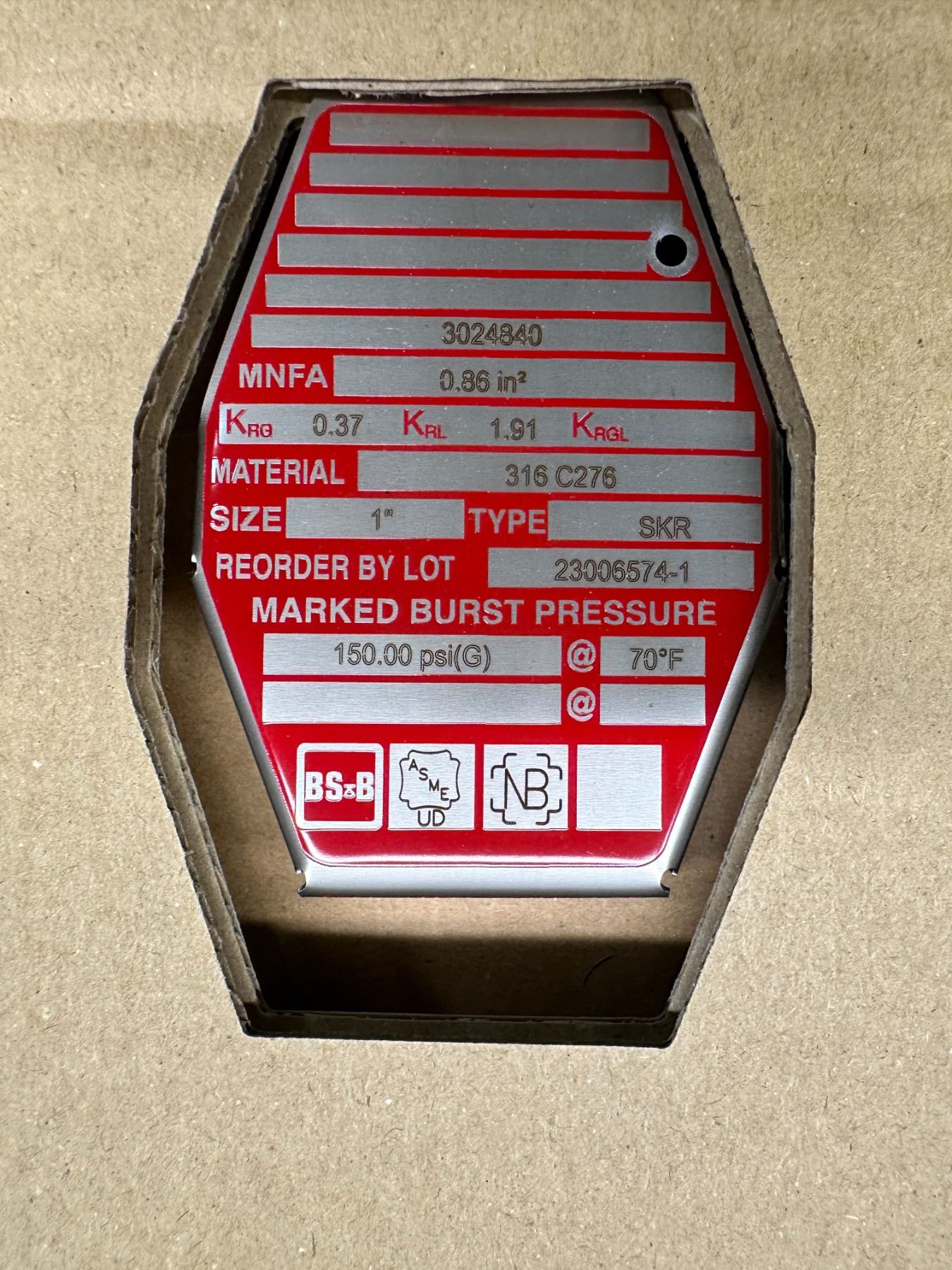 (5) BS&B Safety #23006574-1 Rupture Disc Burst Pressure 150.00PSI(G) @ 70 Degrees