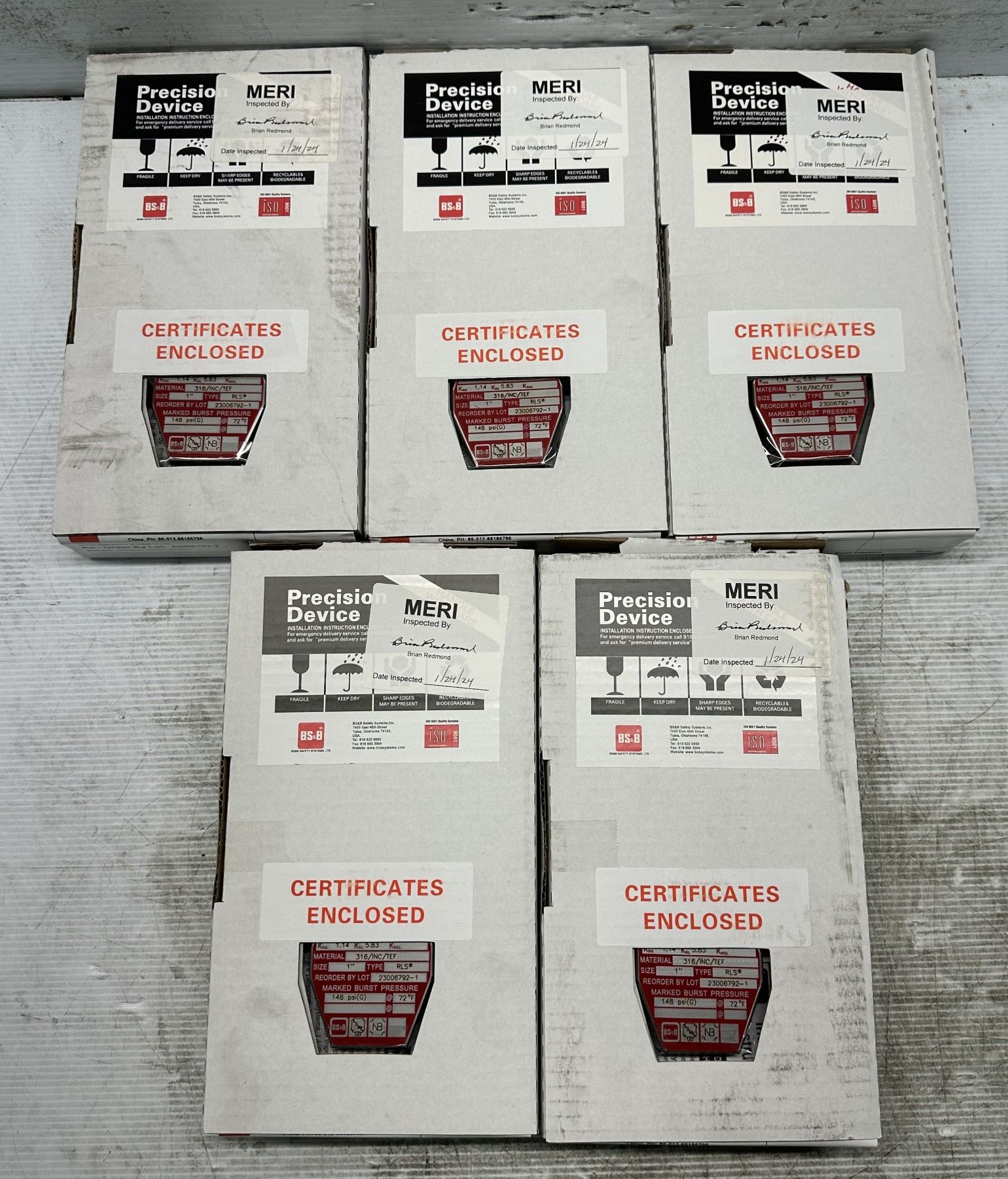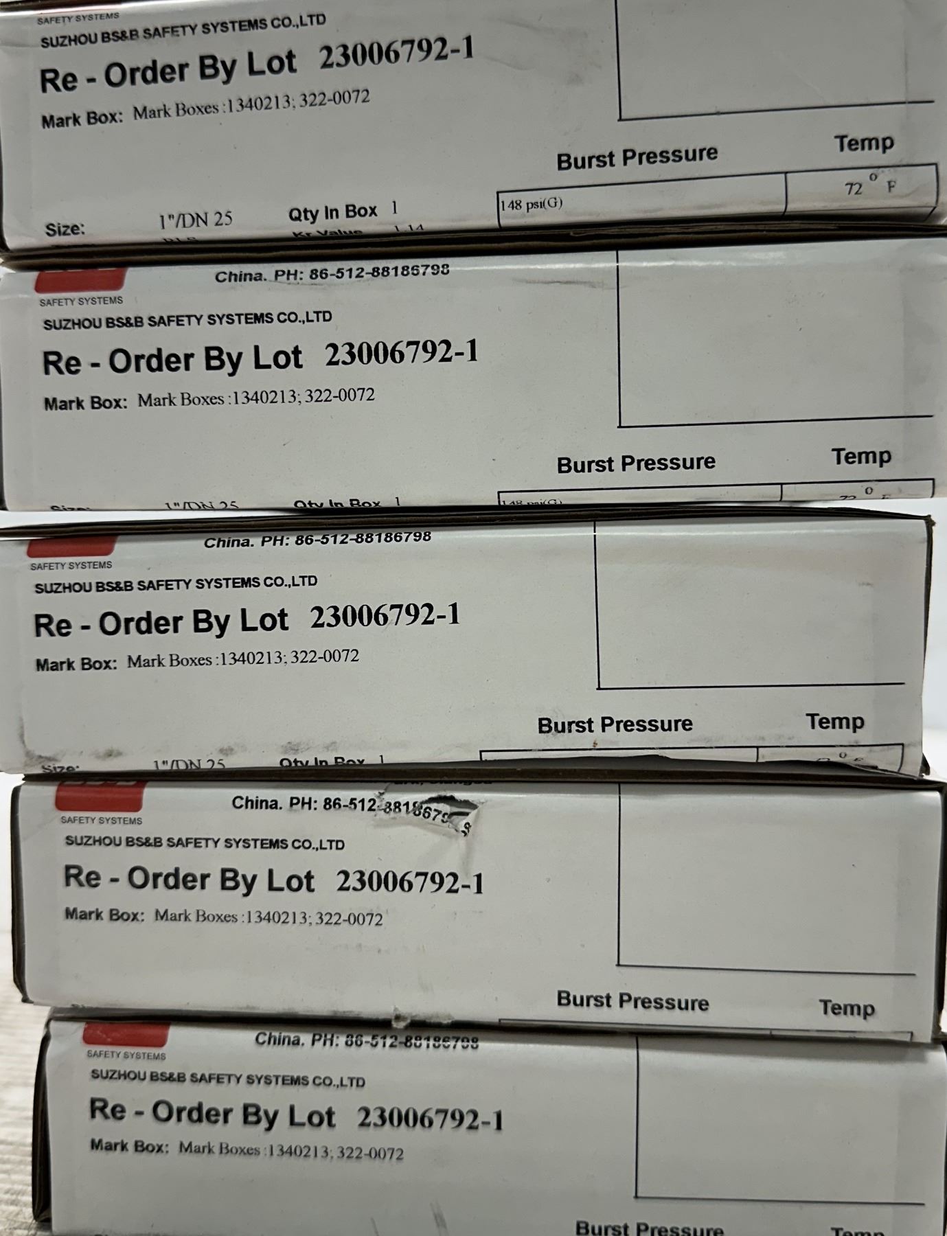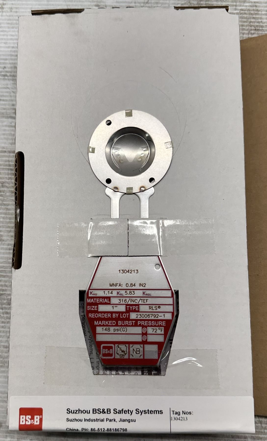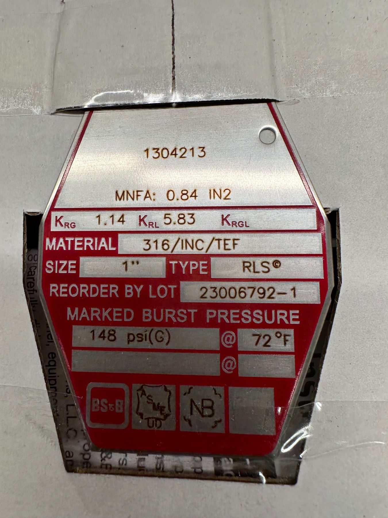 Lot 814 (5) BS&B Safety #23006792-1 Rupture Disc Burst Pressure 148PSI(G) @ 72 Degrees