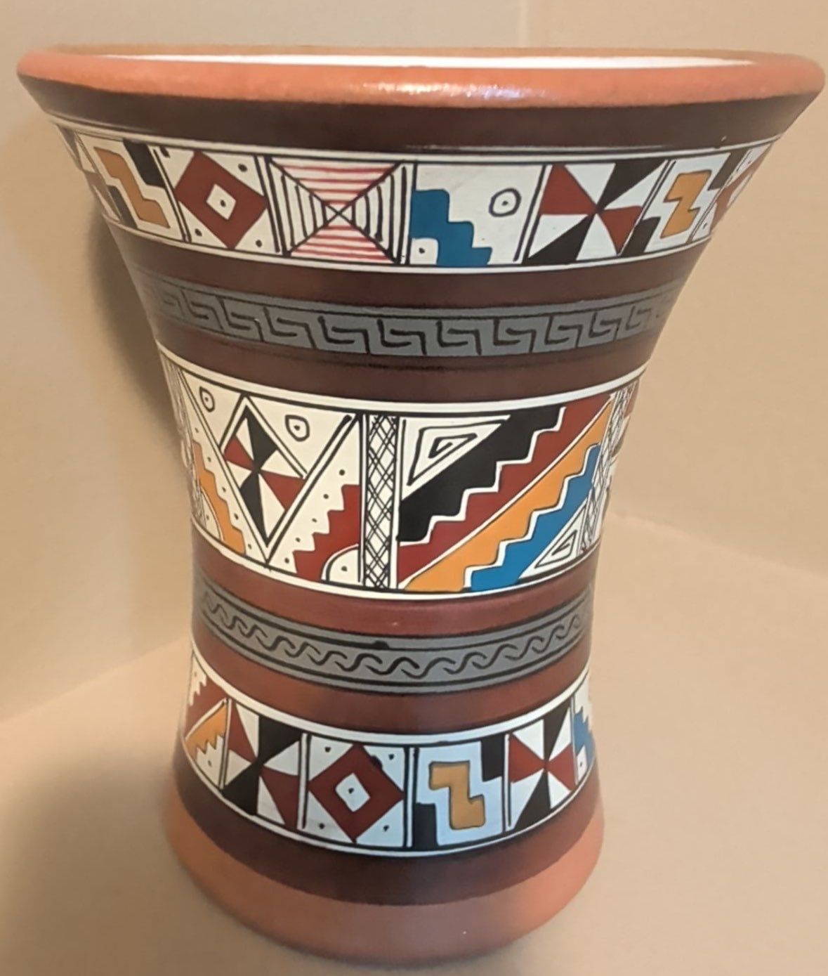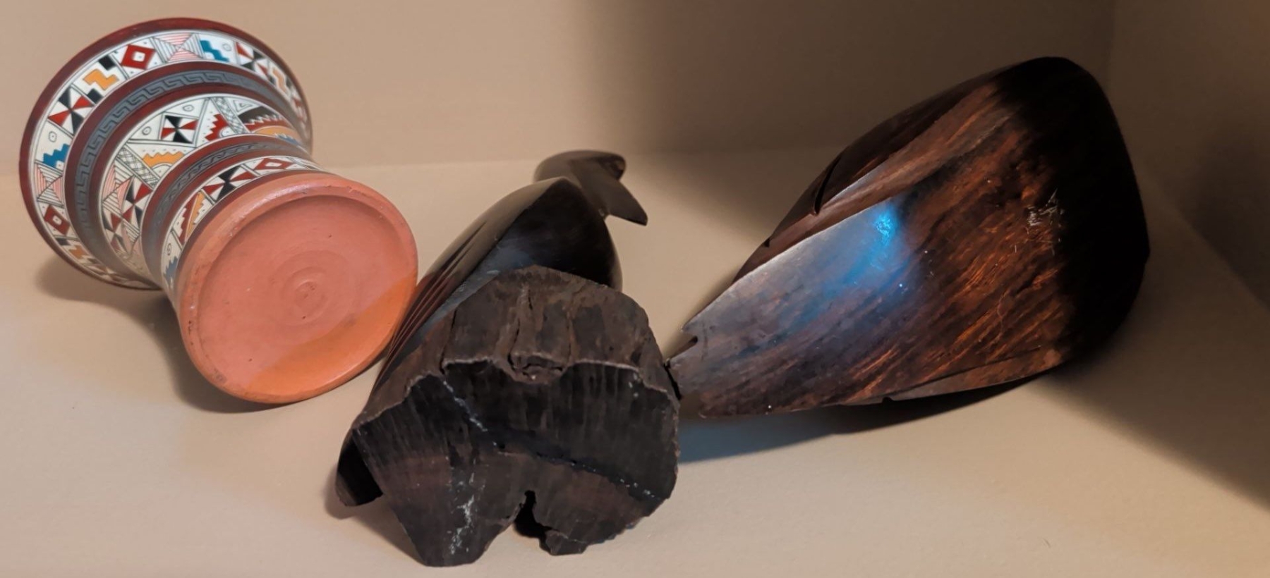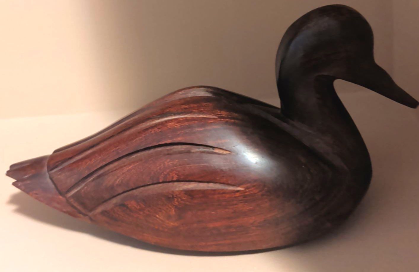 Lot 98 Artisinal Decor - Hand Carved Mahogany Pelican & Duck Decoy w/ Peruvian Redware Pottery Vase 8"Tall