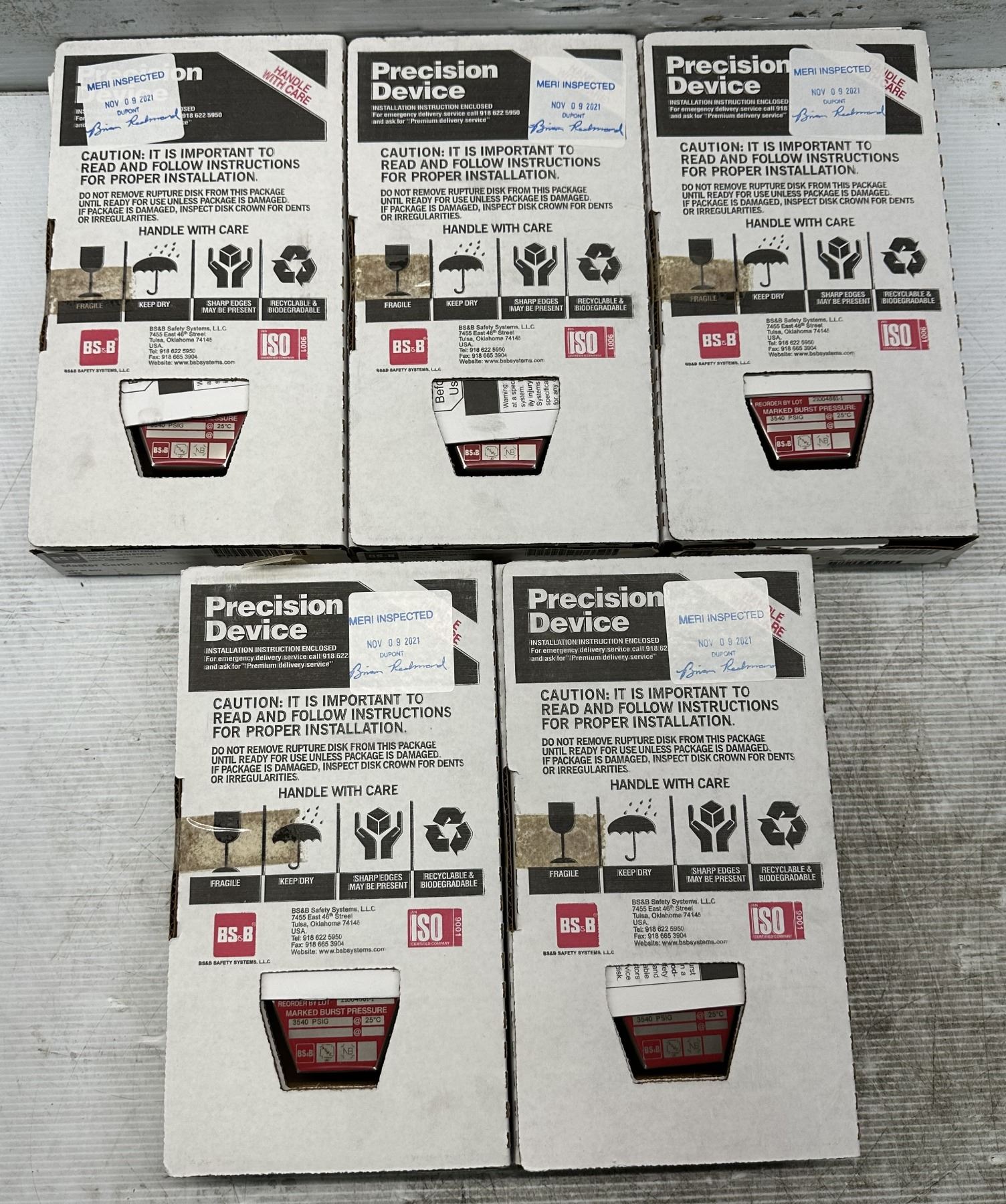 (5) BS&B Safety #21004861-1 Rupture Disc Burst Pressure 3540PSI(G) @ 25 Degrees C
