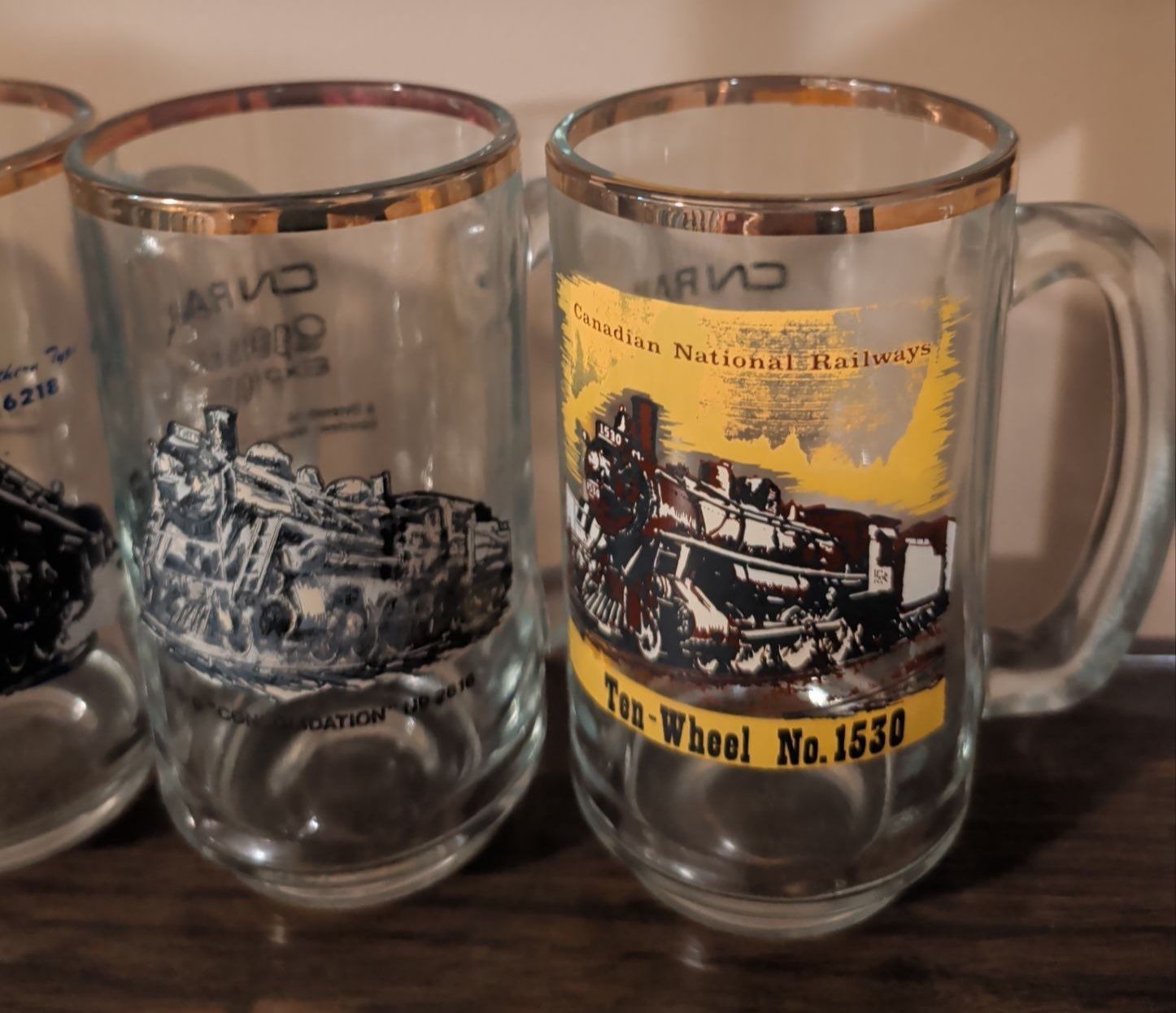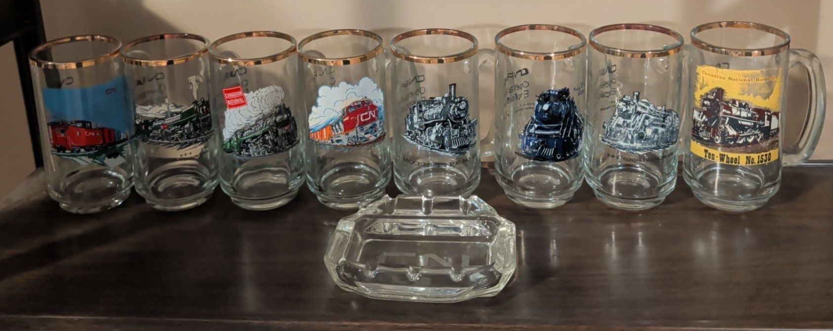 Lot 99 Collectible Canadian National (CN) Gold Rimmed Beer Mugs w/ Ashtray