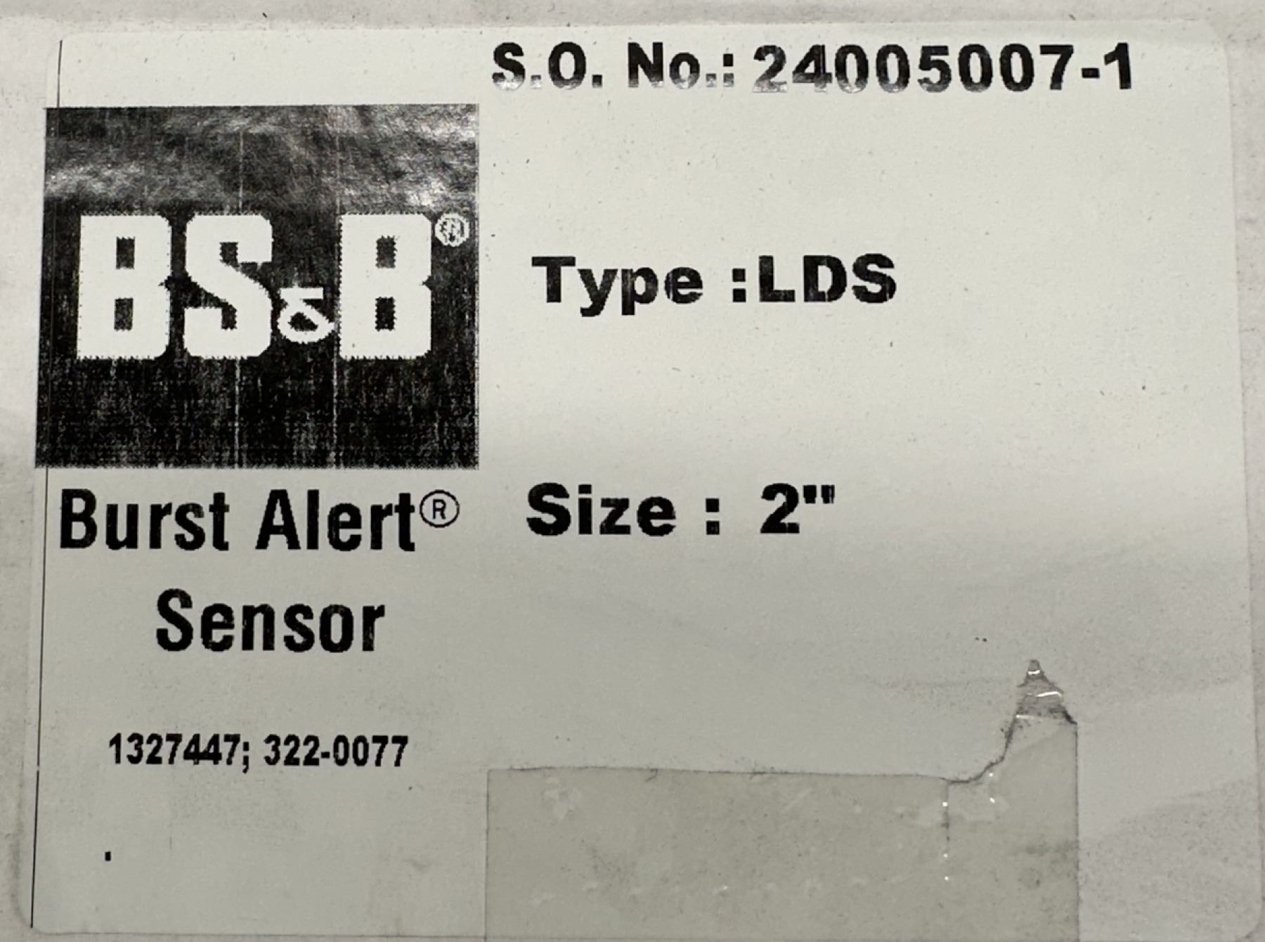 Lot 821 BS&B Safety #H1-0-1076-000 Type LDS Size 2" Burst Alert Sensor