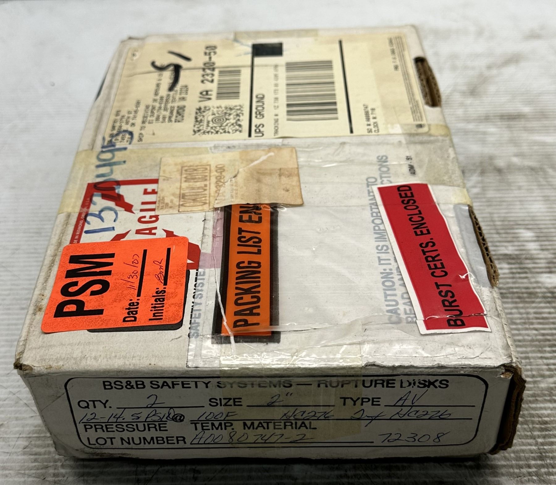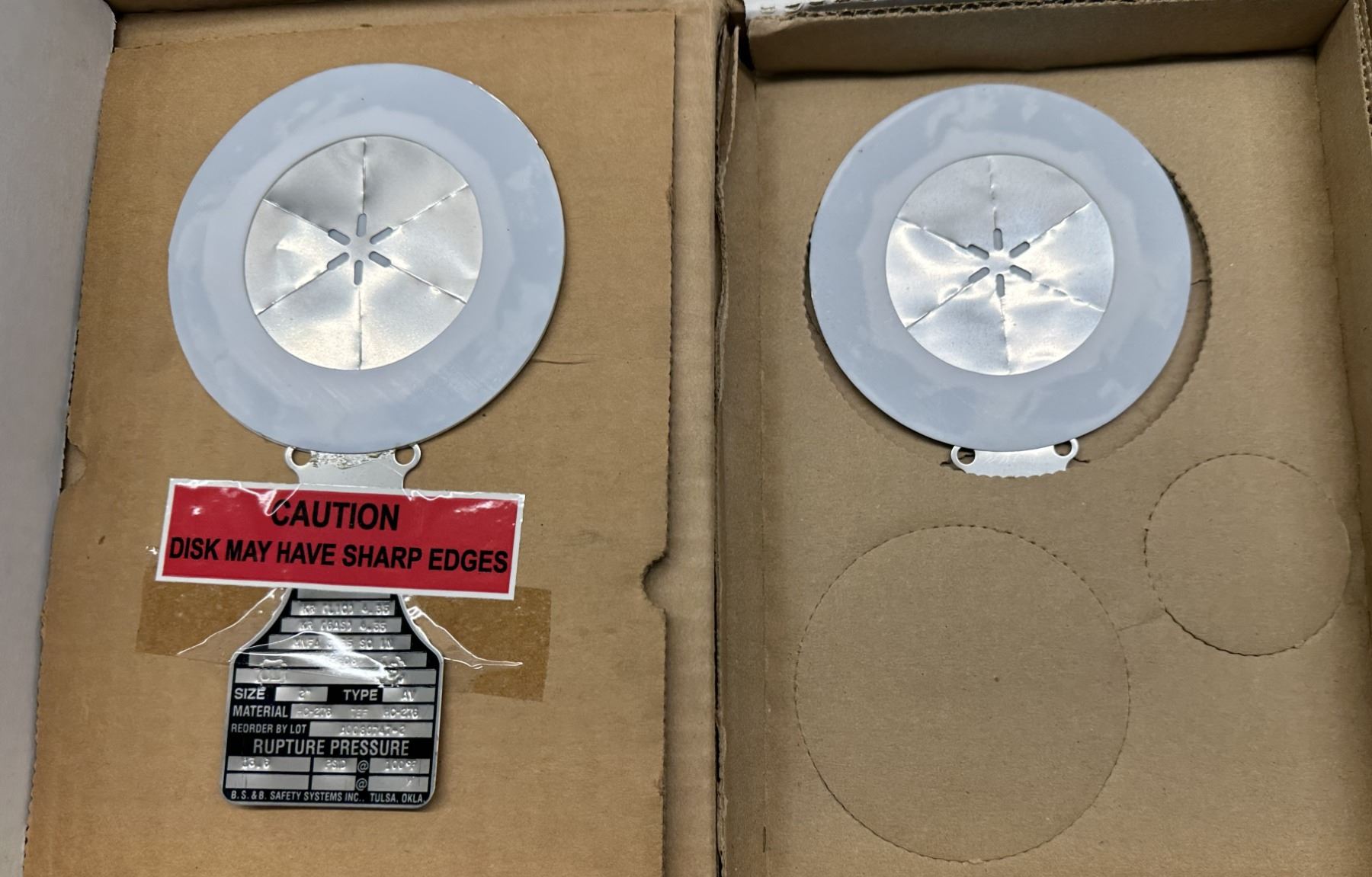 Lot 822 BS&B Safety #A0080747-2 Rupture Disc Burst Pressure 13.6PSI(D) @ 100 Degrees