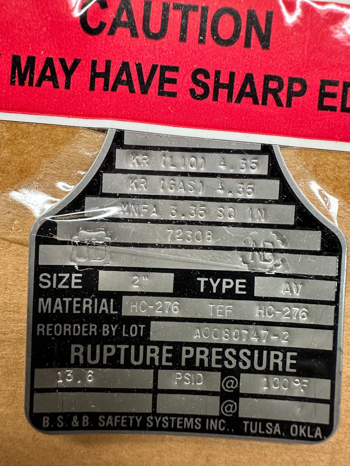 BS&B Safety #A0080747-2 Rupture Disc Burst Pressure 13.6PSI(D) @ 100 Degrees