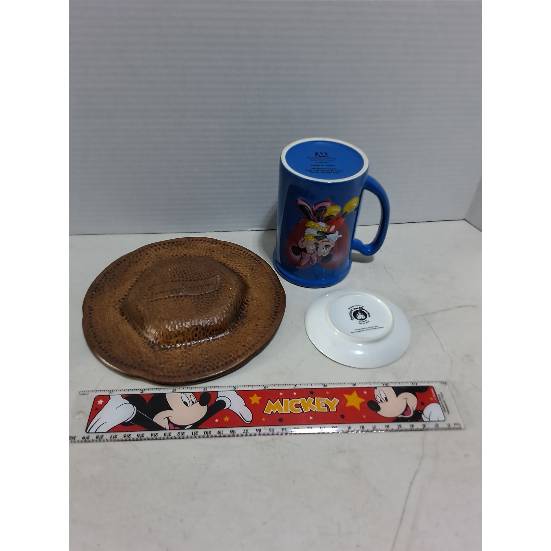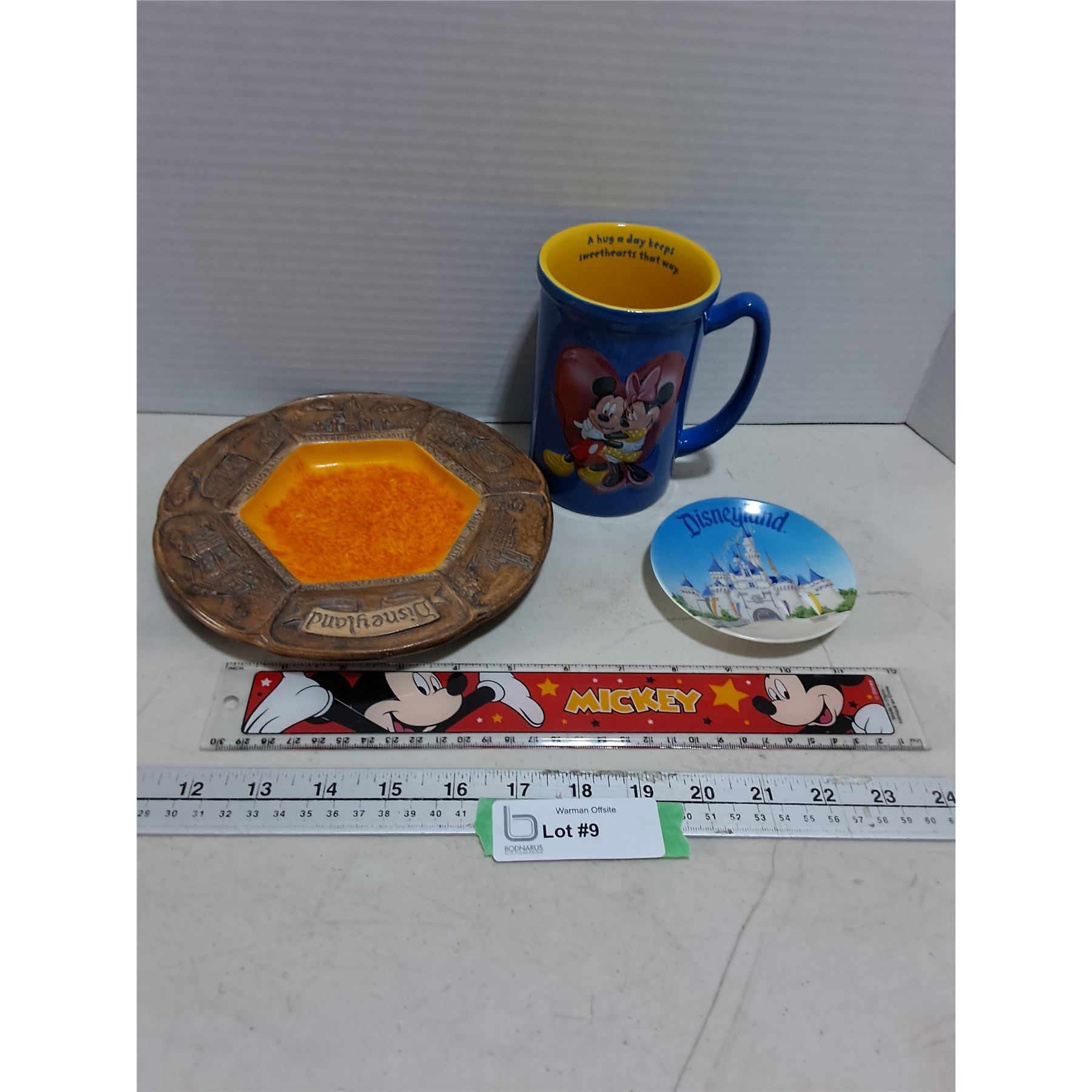 Lot 9 Disney/Mickey Mouse Memorabilia (Ash Tray, Ruler, Mug, Art Dish)