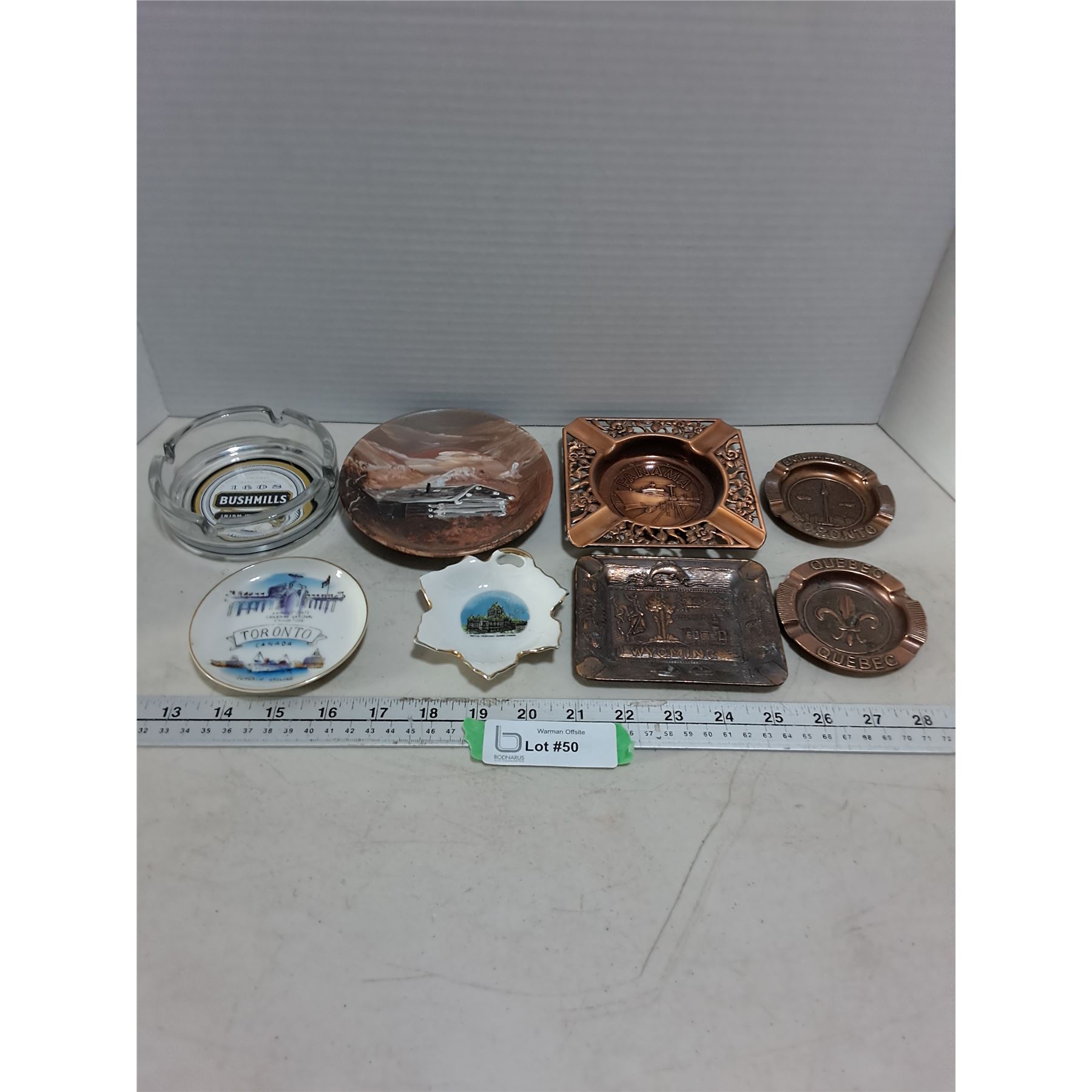 Lot 50 (8) Vintage Brass & Ceramic Ash Trays & Trinket Dishes