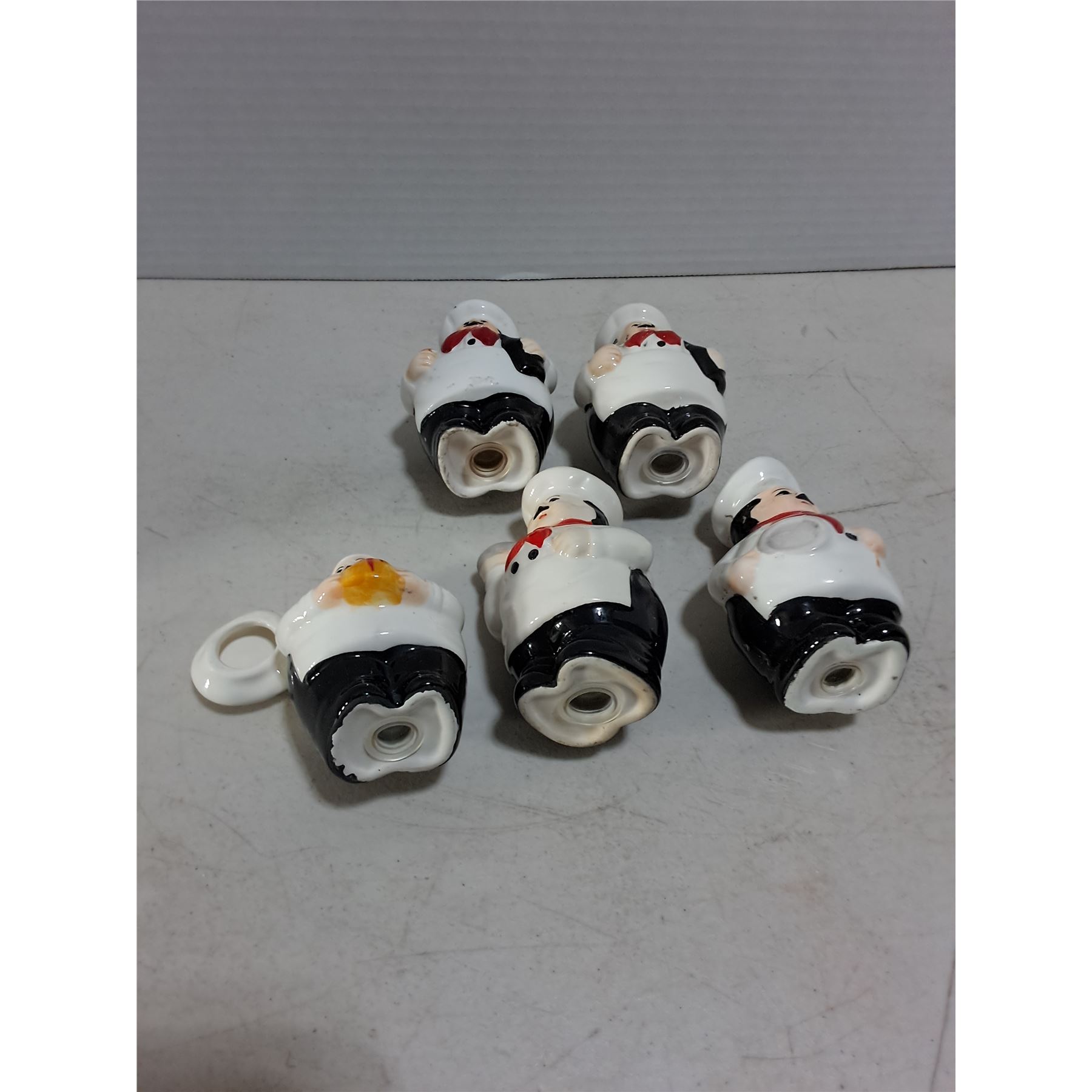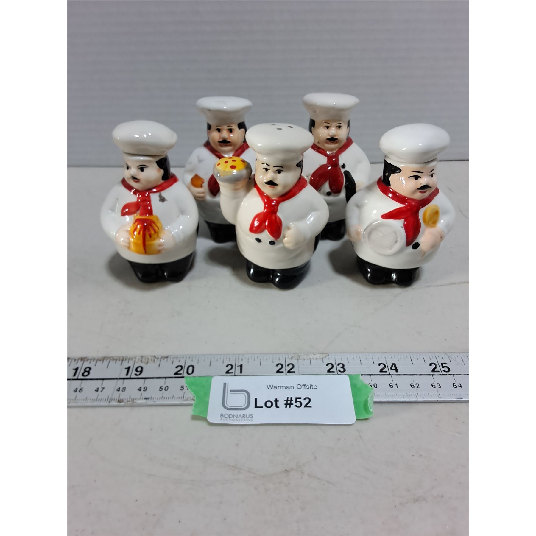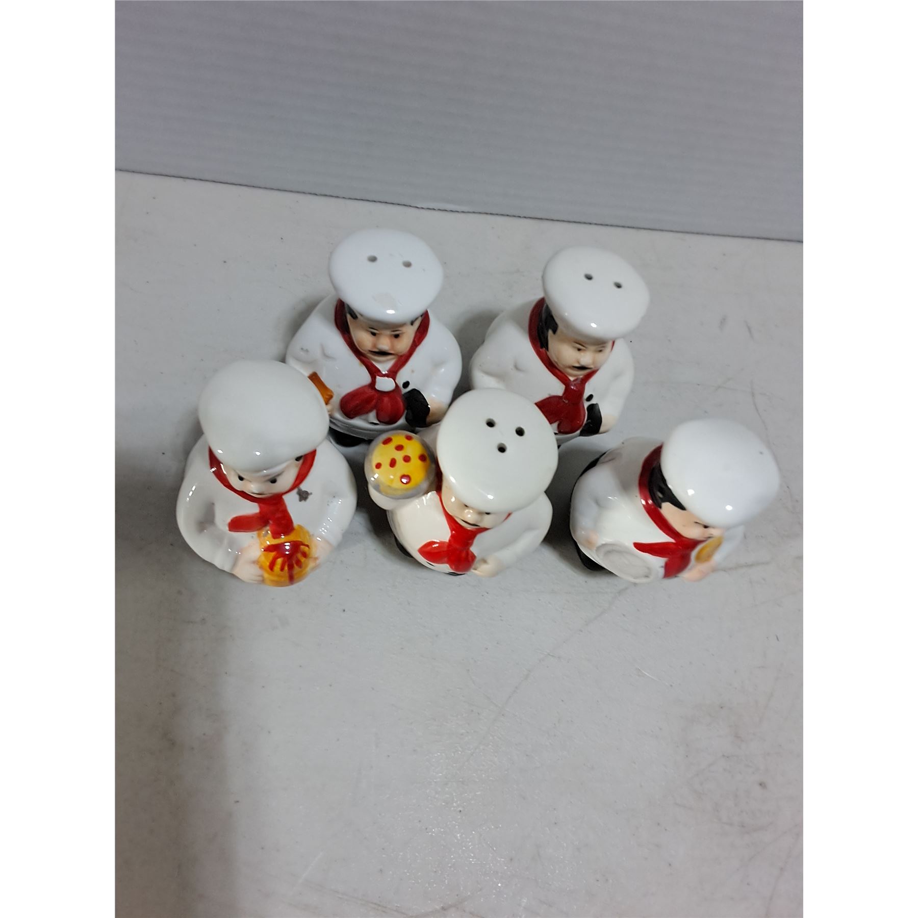 Lot 52 (5) Porcelain Chef Salt/Pepper/Oil Dispensers