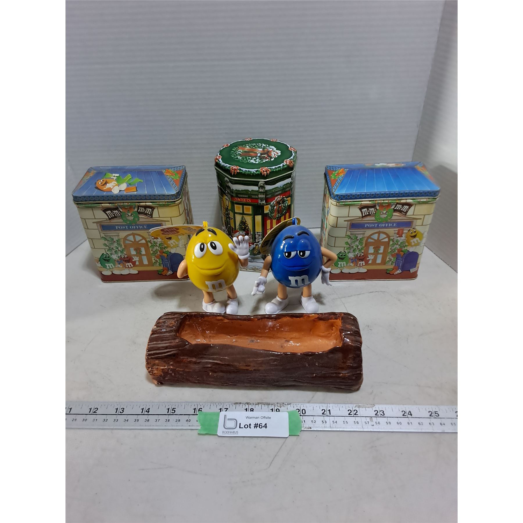 Lot 64 M&M Memorabilia Tins & Ornaments, Crafted Ceramic Log