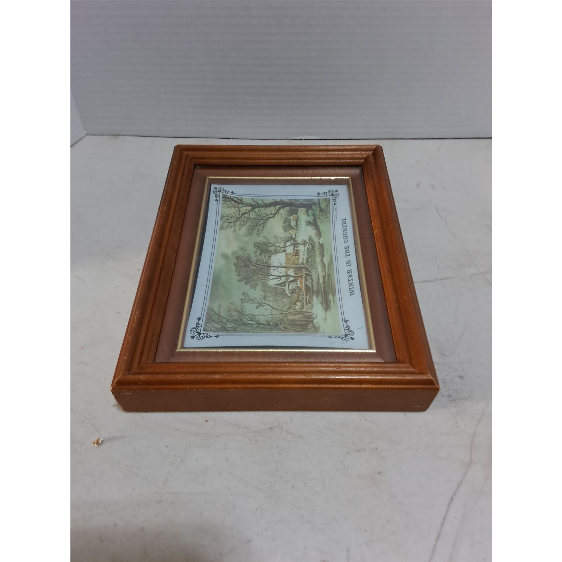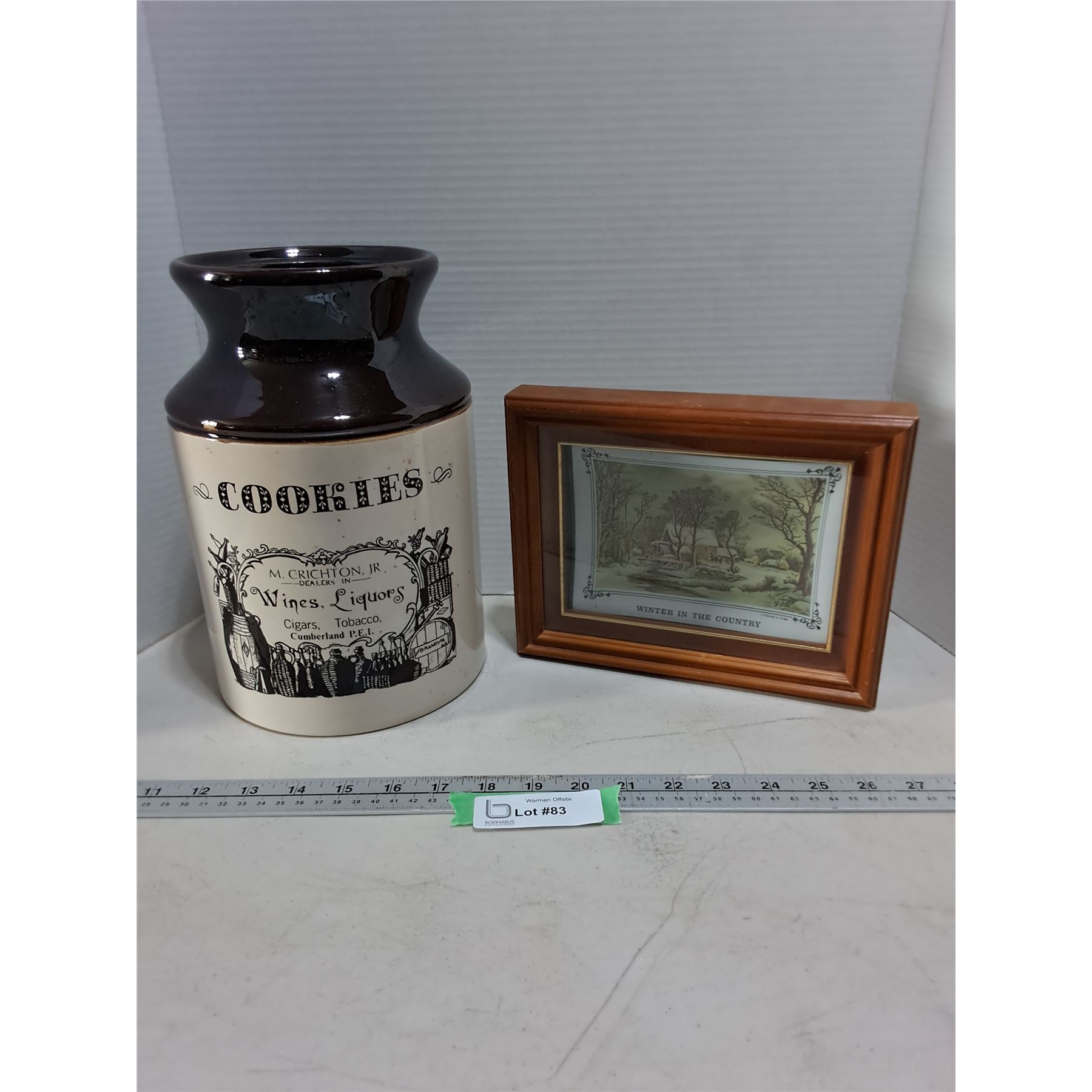 Lot 83 Vintage Ceramic Cookie Jar, Framed "Winter In The Country" Trinket Dish