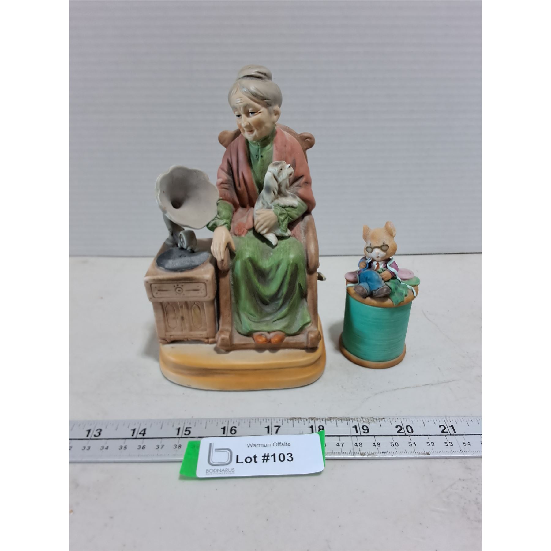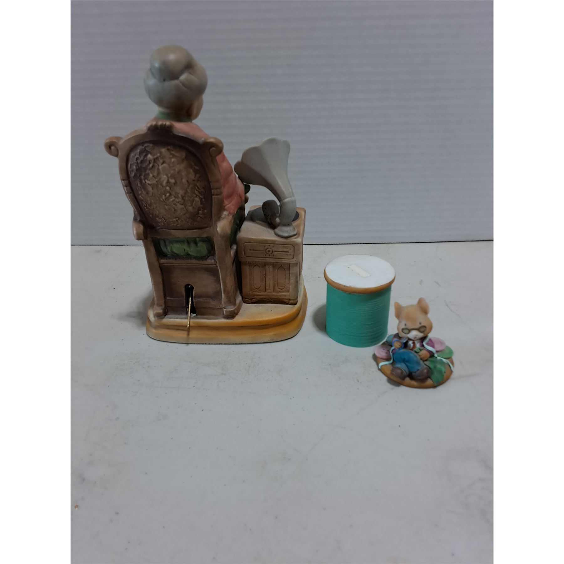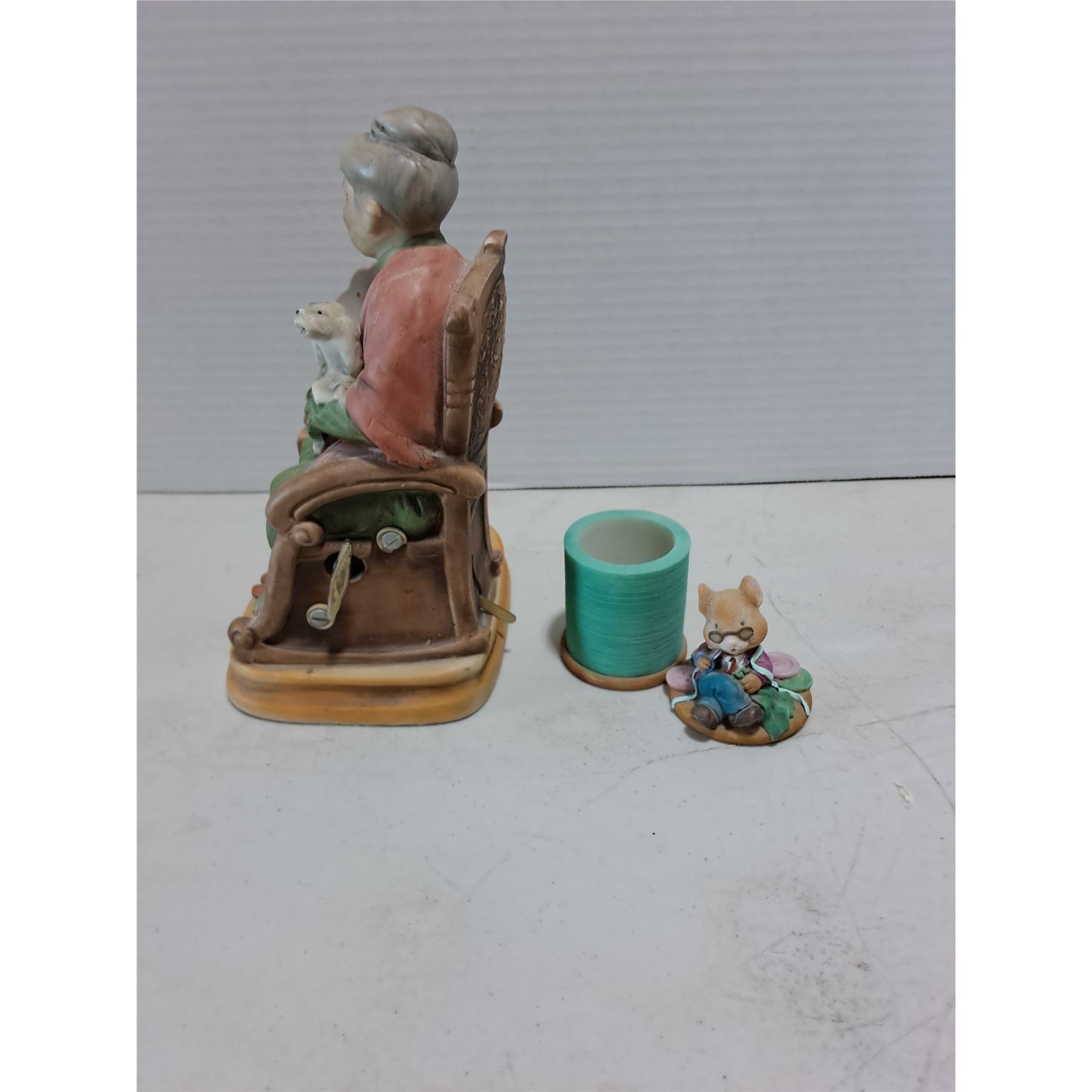 Lot 103 (2) Vintage Porcelain Ornaments (Old Woman with Puppy Plays Music)