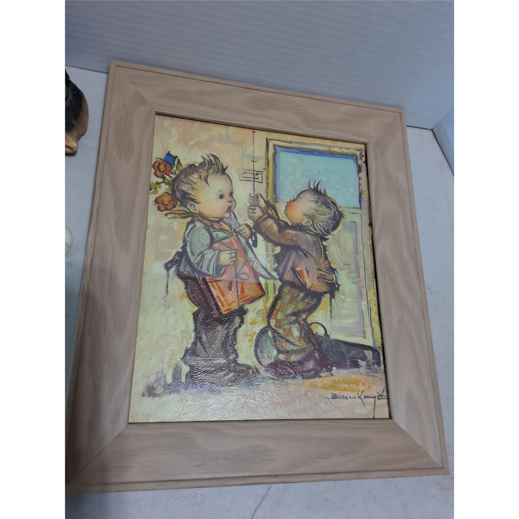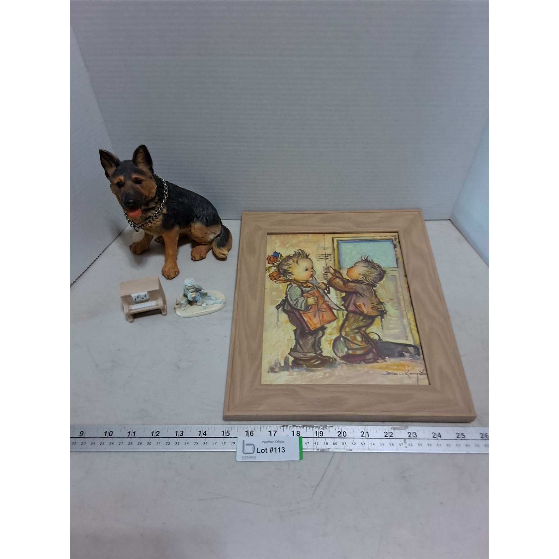 Lot 113 Framed 10.5" x 12.5" "Children" Print, German Shepherd & Mini Ornaments