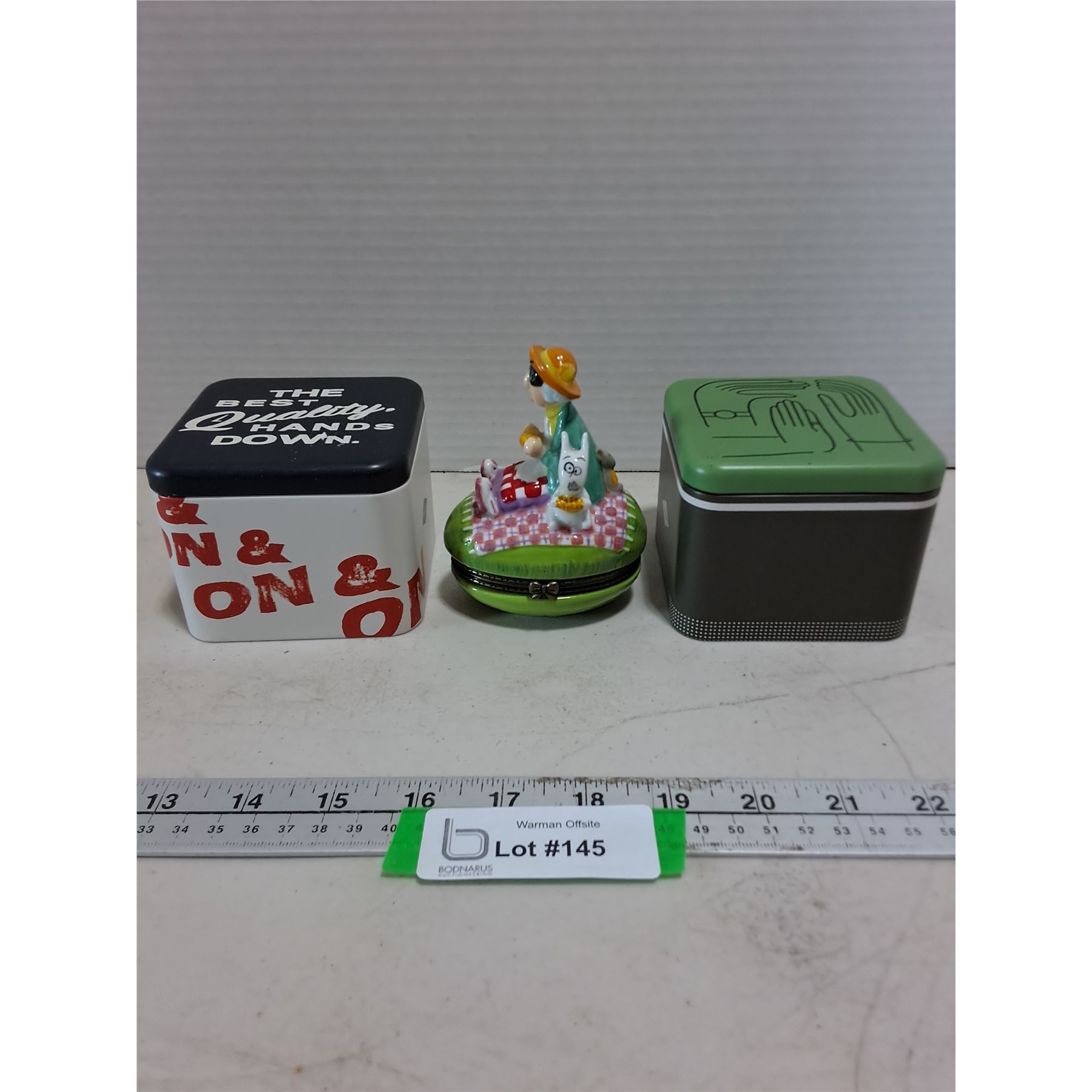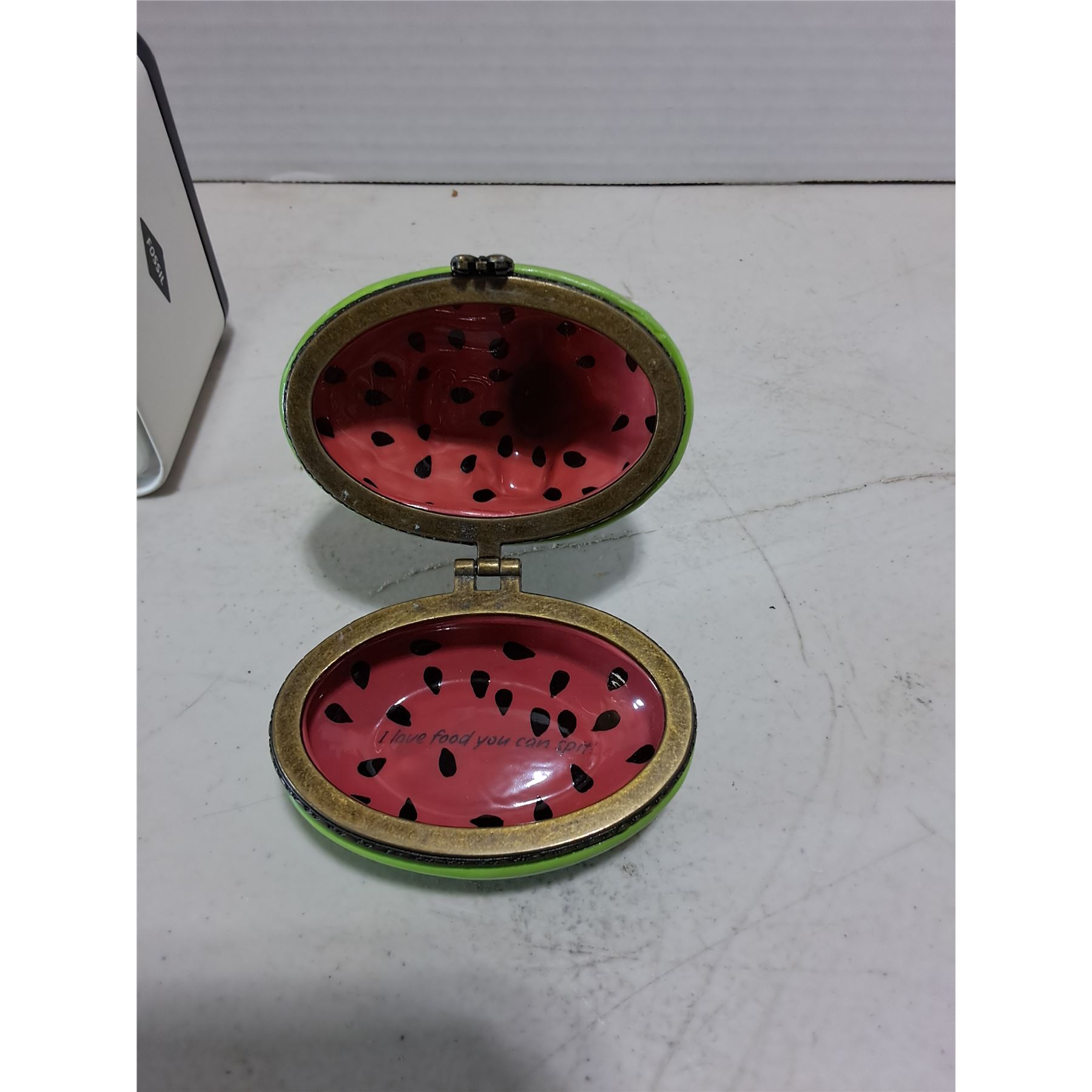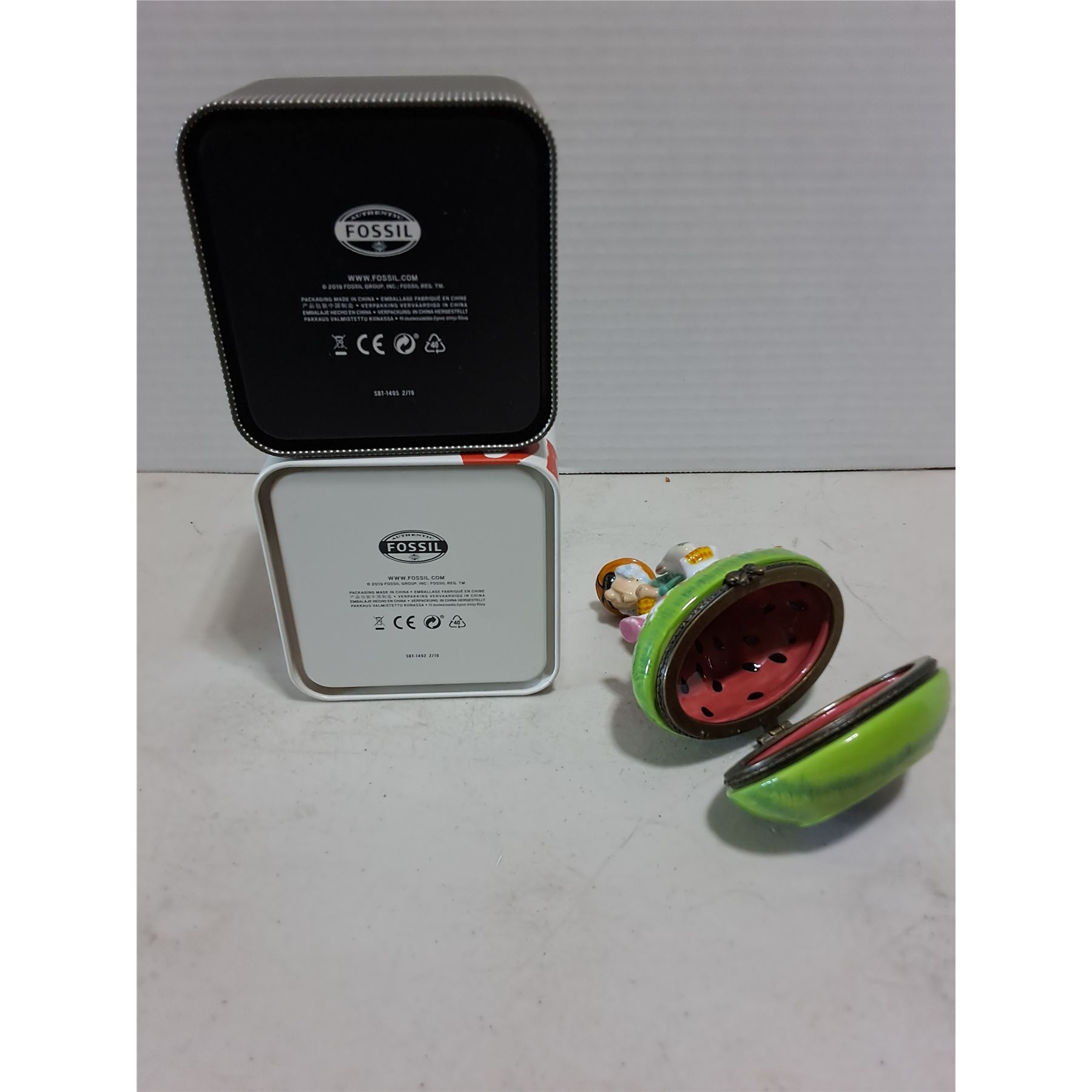Lot 145 (2) Fossil Tins, Ornamental "Watermelon" Jewelry Box