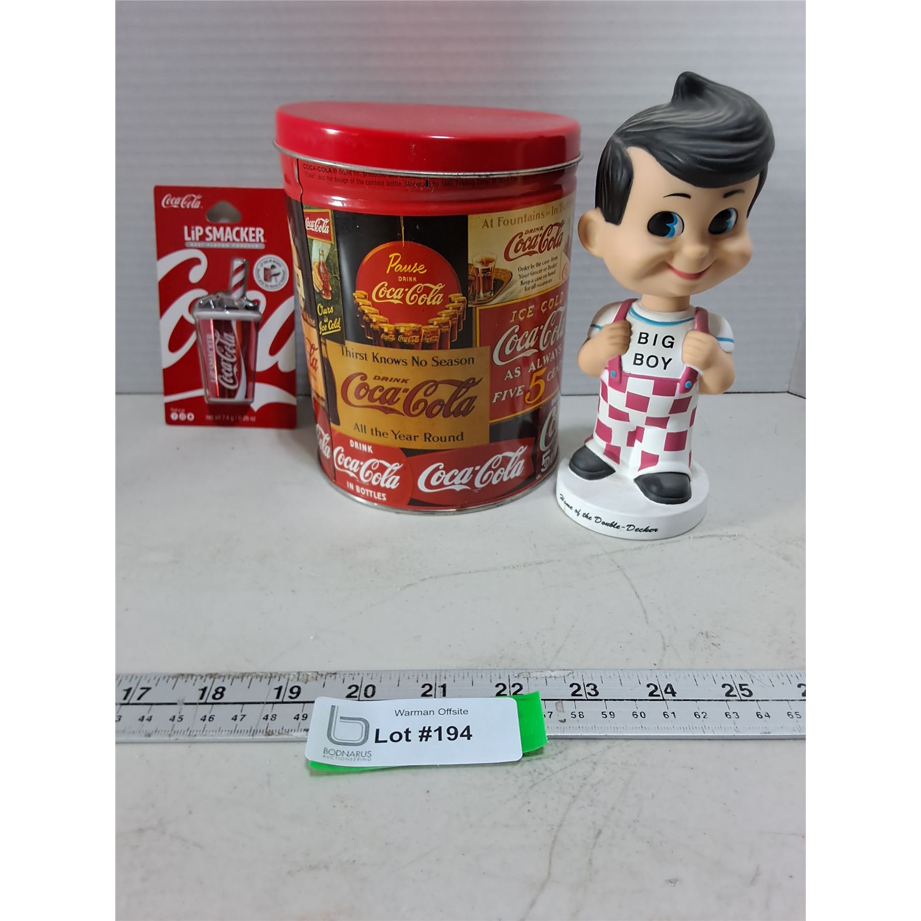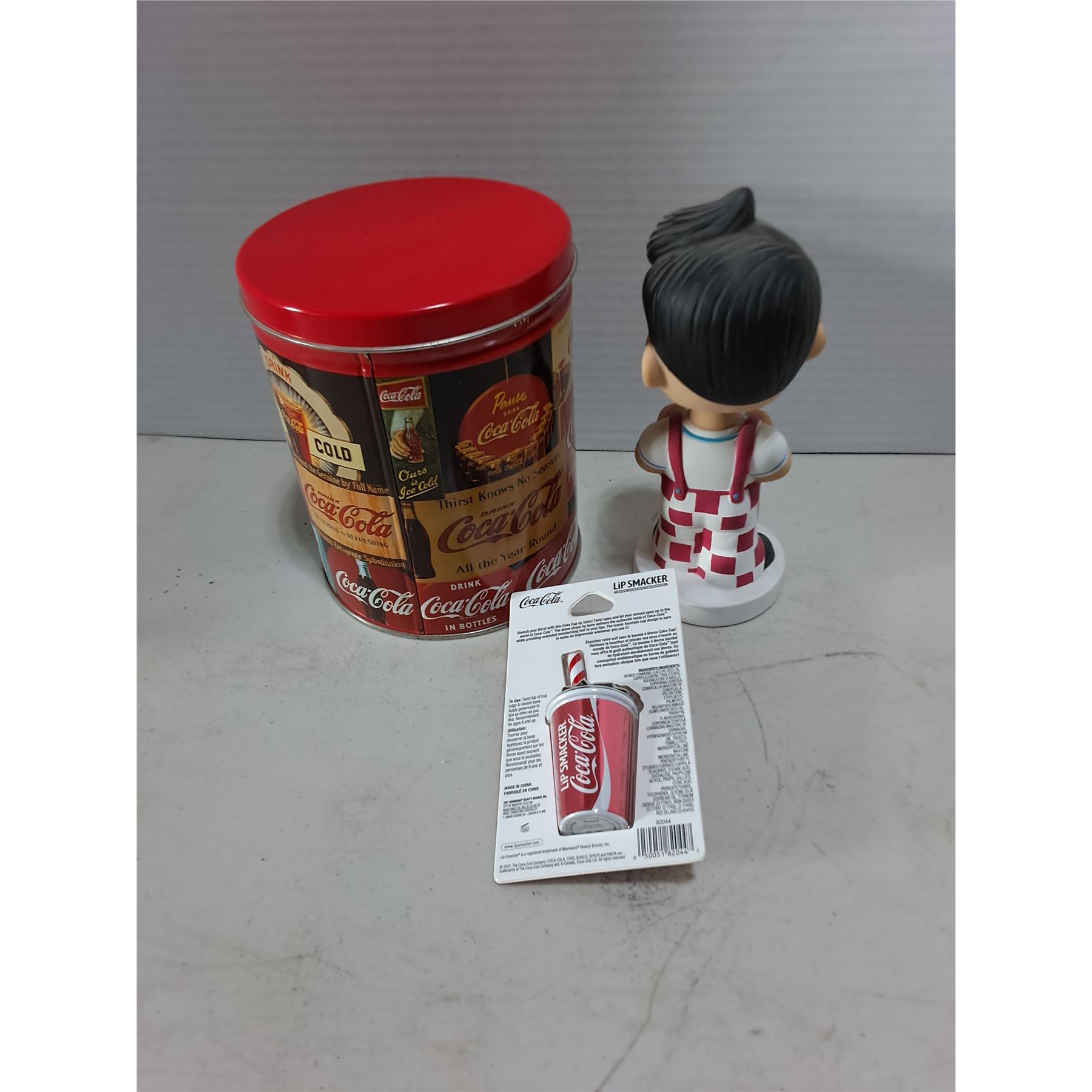Lot 194 Coca-Cola Tin & Sealed Lip Balm, Bob's Big Boy Bobble Head