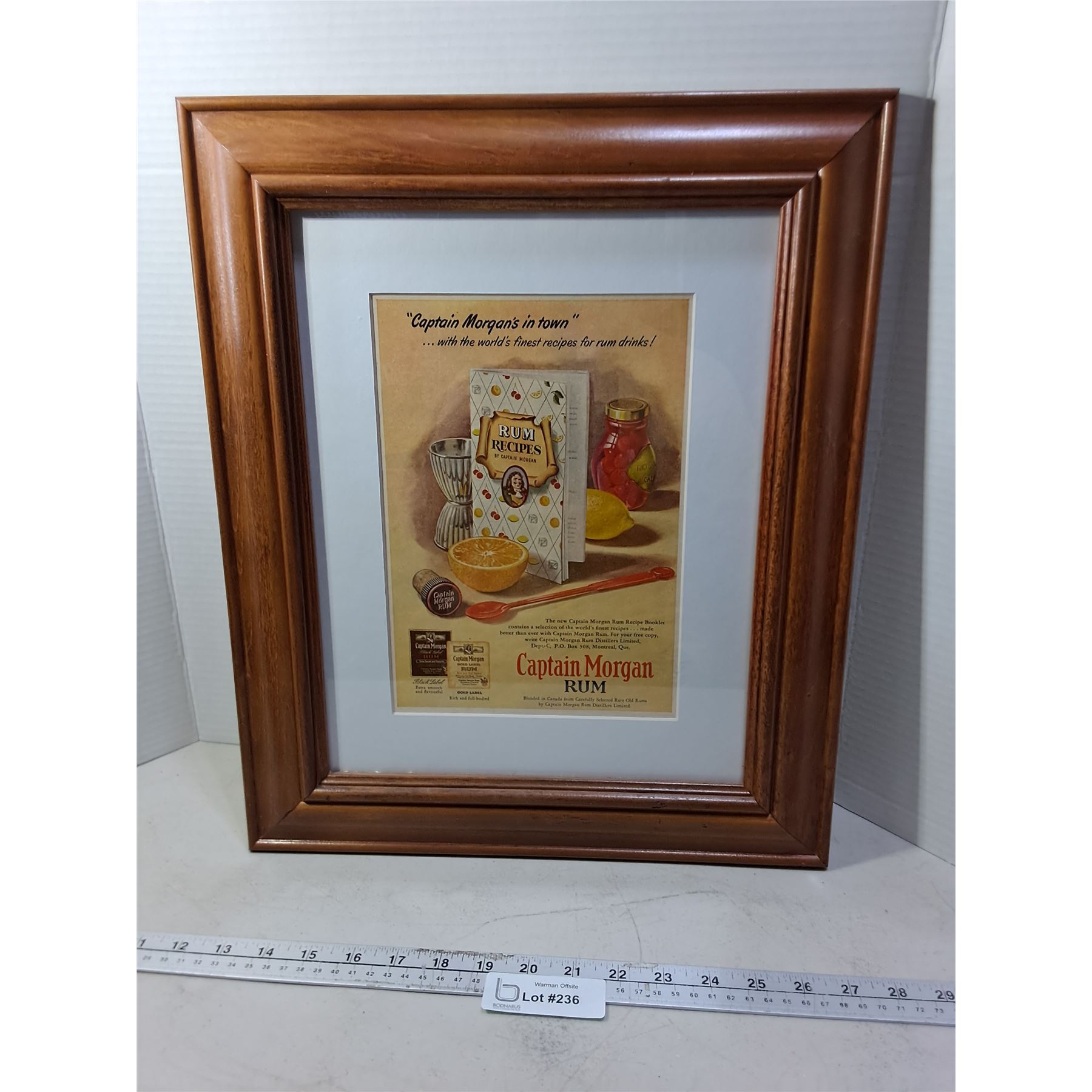 Lot 236 Wood Framed 1953 Captain Morgan Advertisement- 15" x 18"