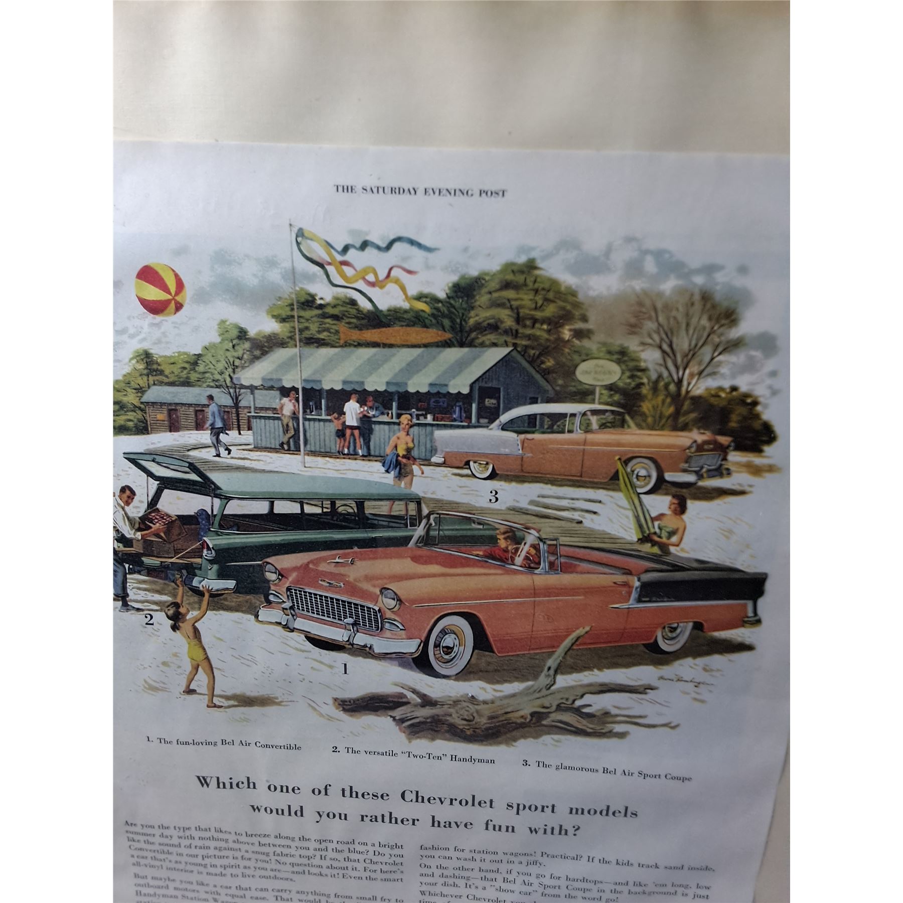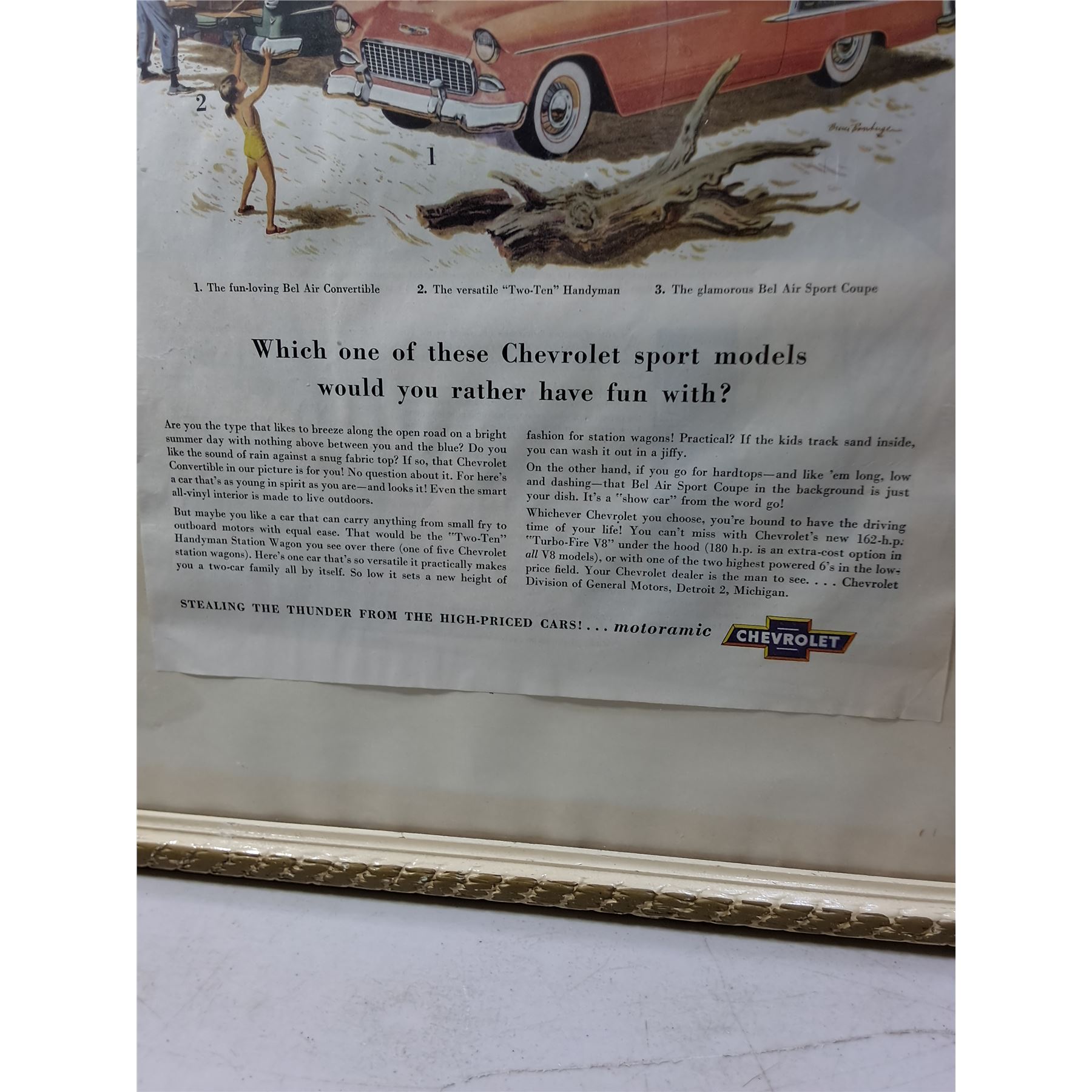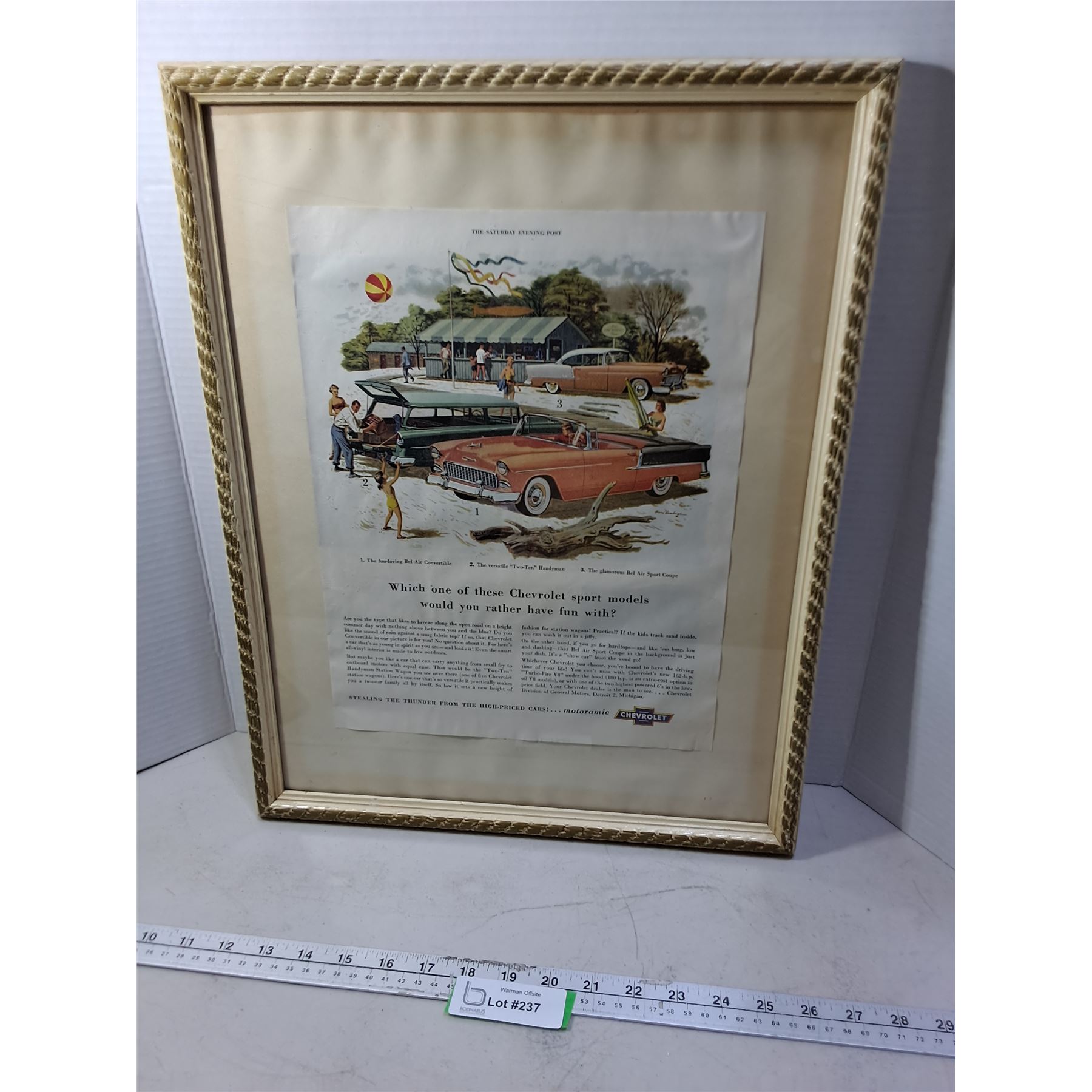 Lot 237 Wood Framed Vintage "Saturday Evening Post" Chevrolet Advertisement - 15" x 19"