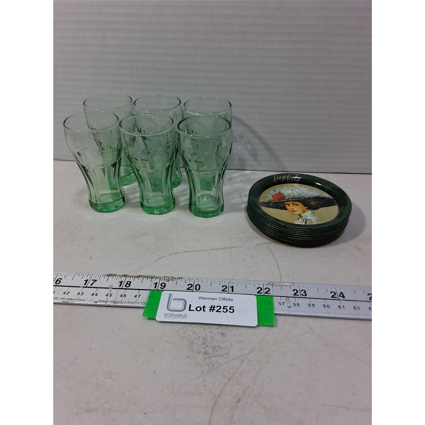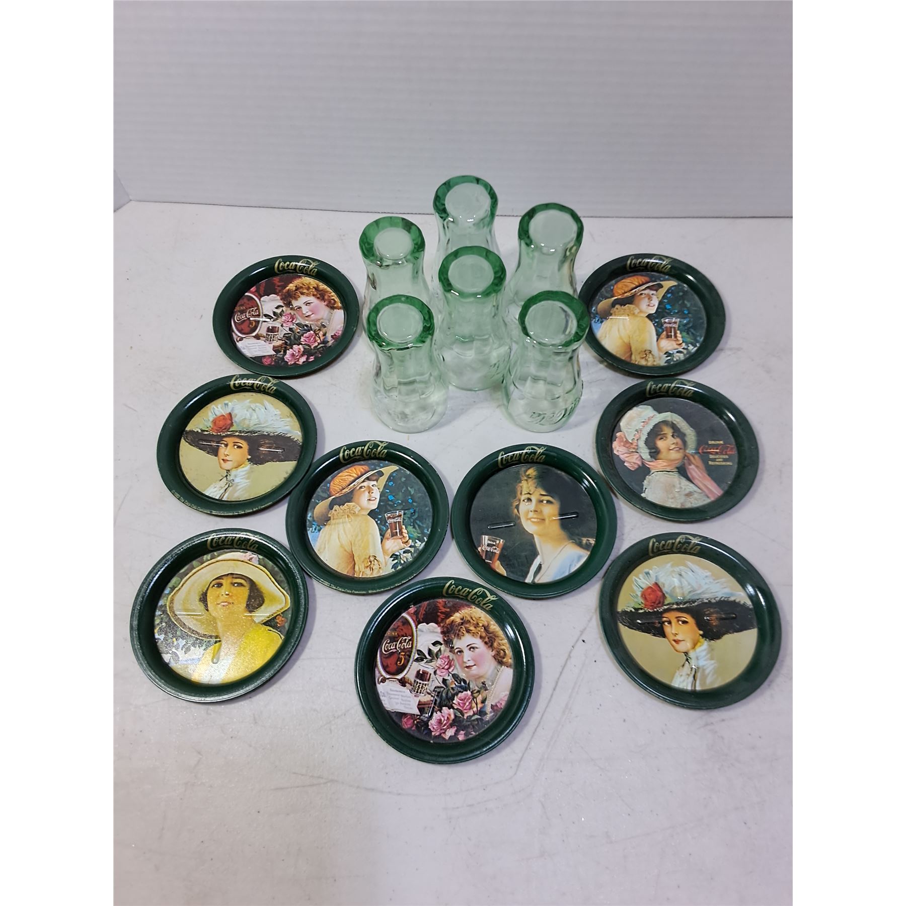 Lot 255 Coca-Cola Miniature Memorabilia (6 Glasses, 9 Metal Trays)