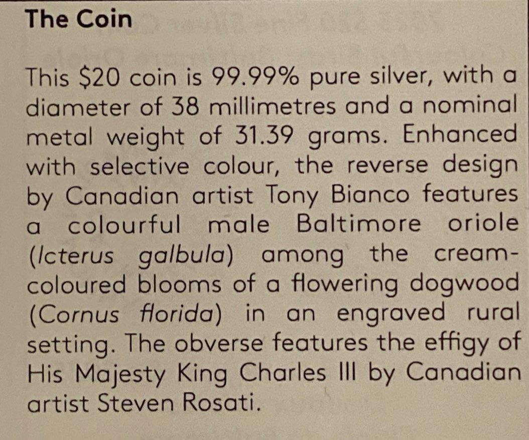 Lot 82 2025 $20 Baltimore Oriole Fine Silver Coin 31.39 Grams