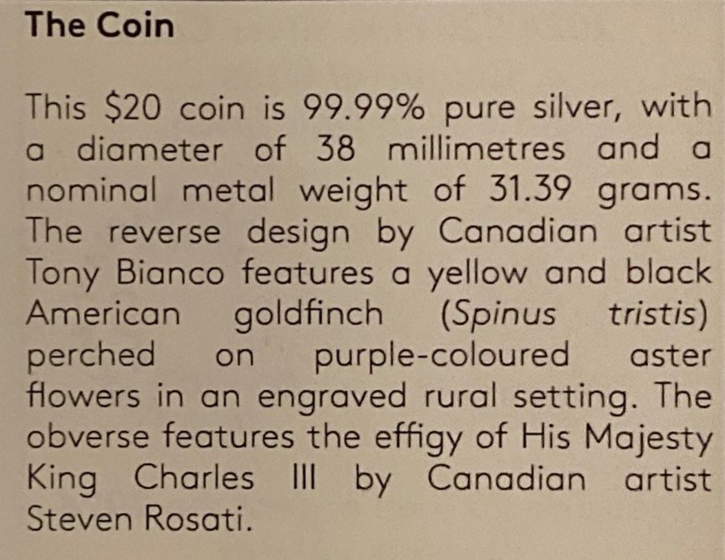 Lot 87 2024 $20 American Goldfinch Fine Silver Coin 31.39 Grams